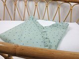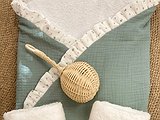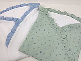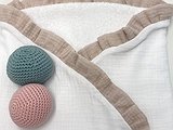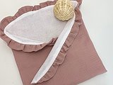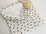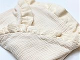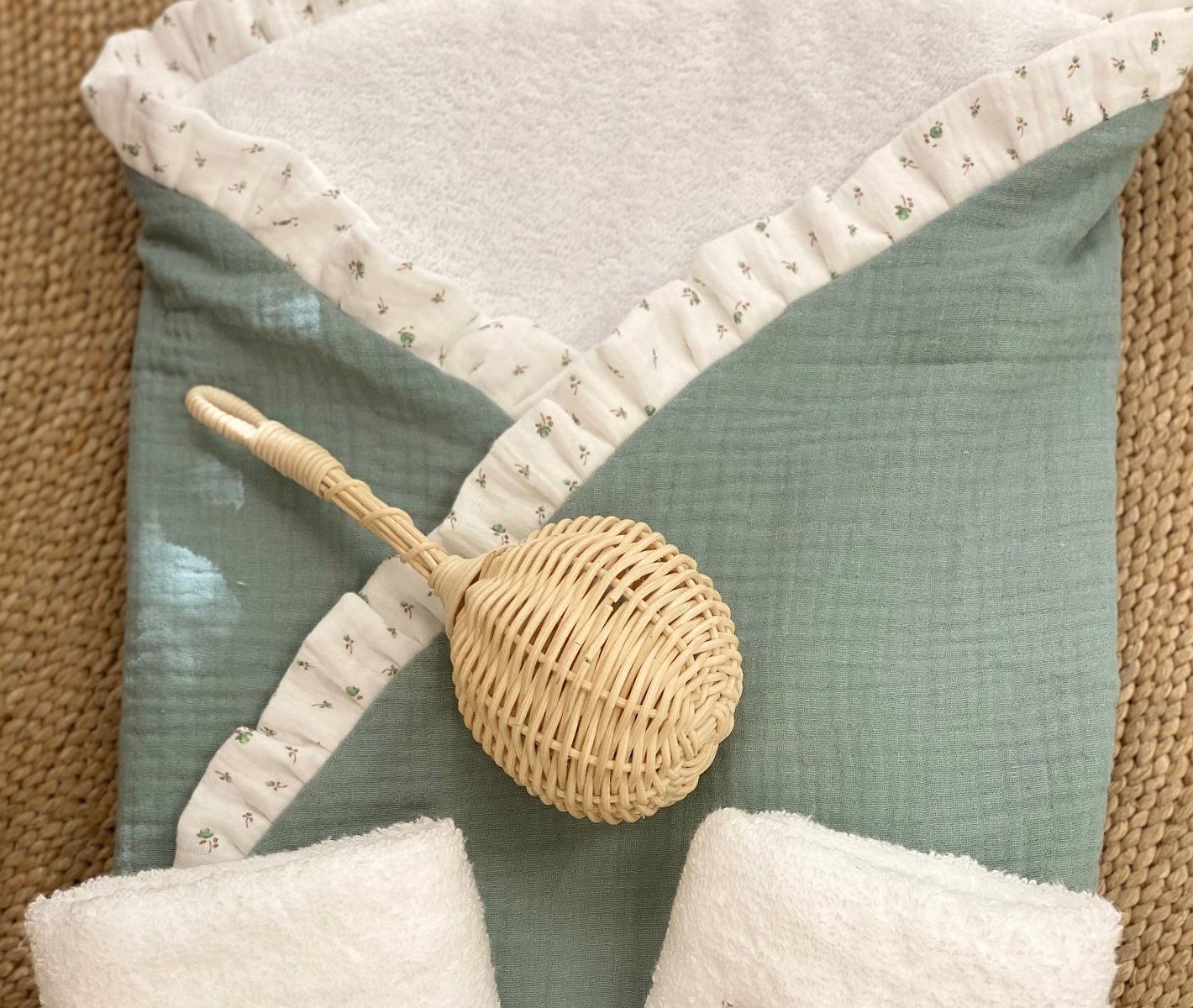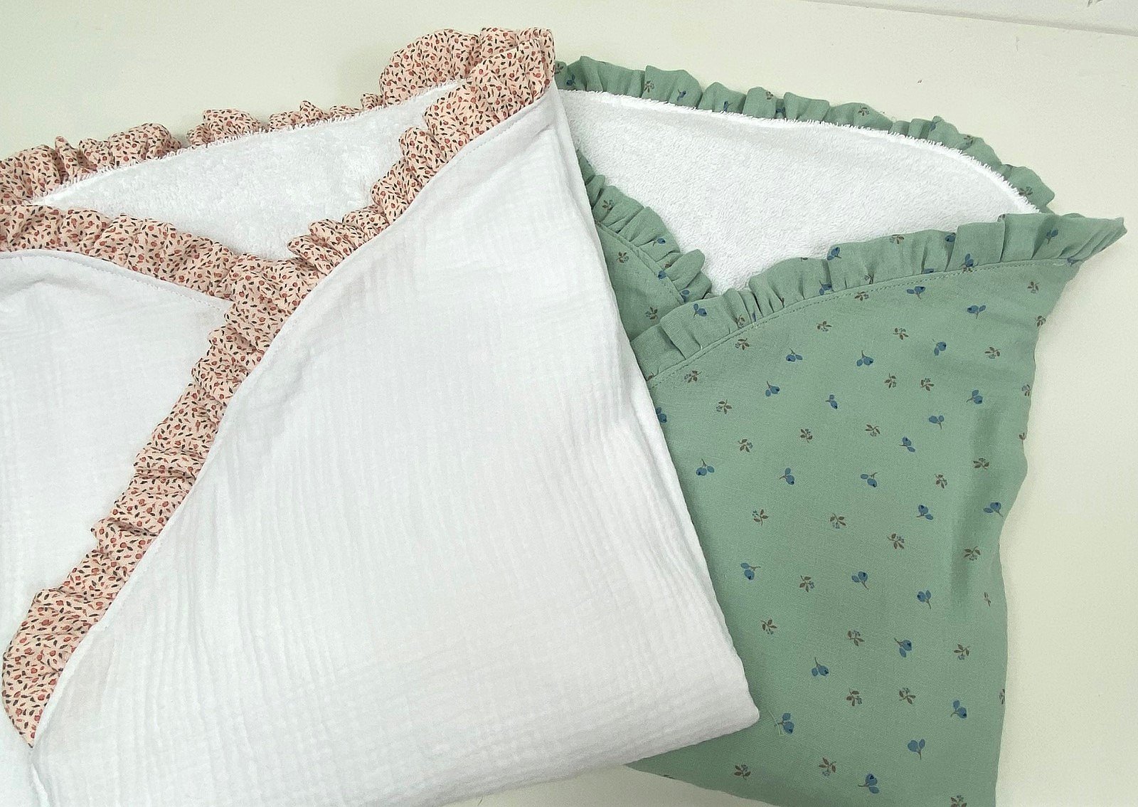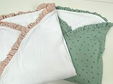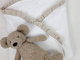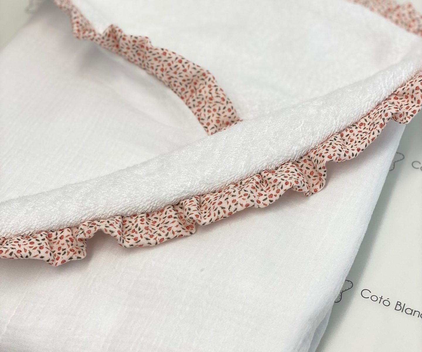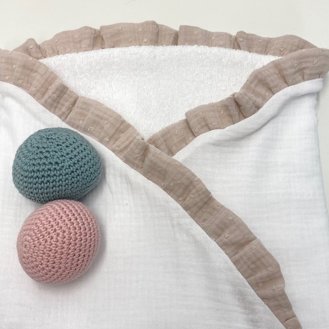 Arrullo de muselina con volante perfecto para la clínica y para usarlo posteriormente para tapar al bebé y mantener así su calor corporal. \n