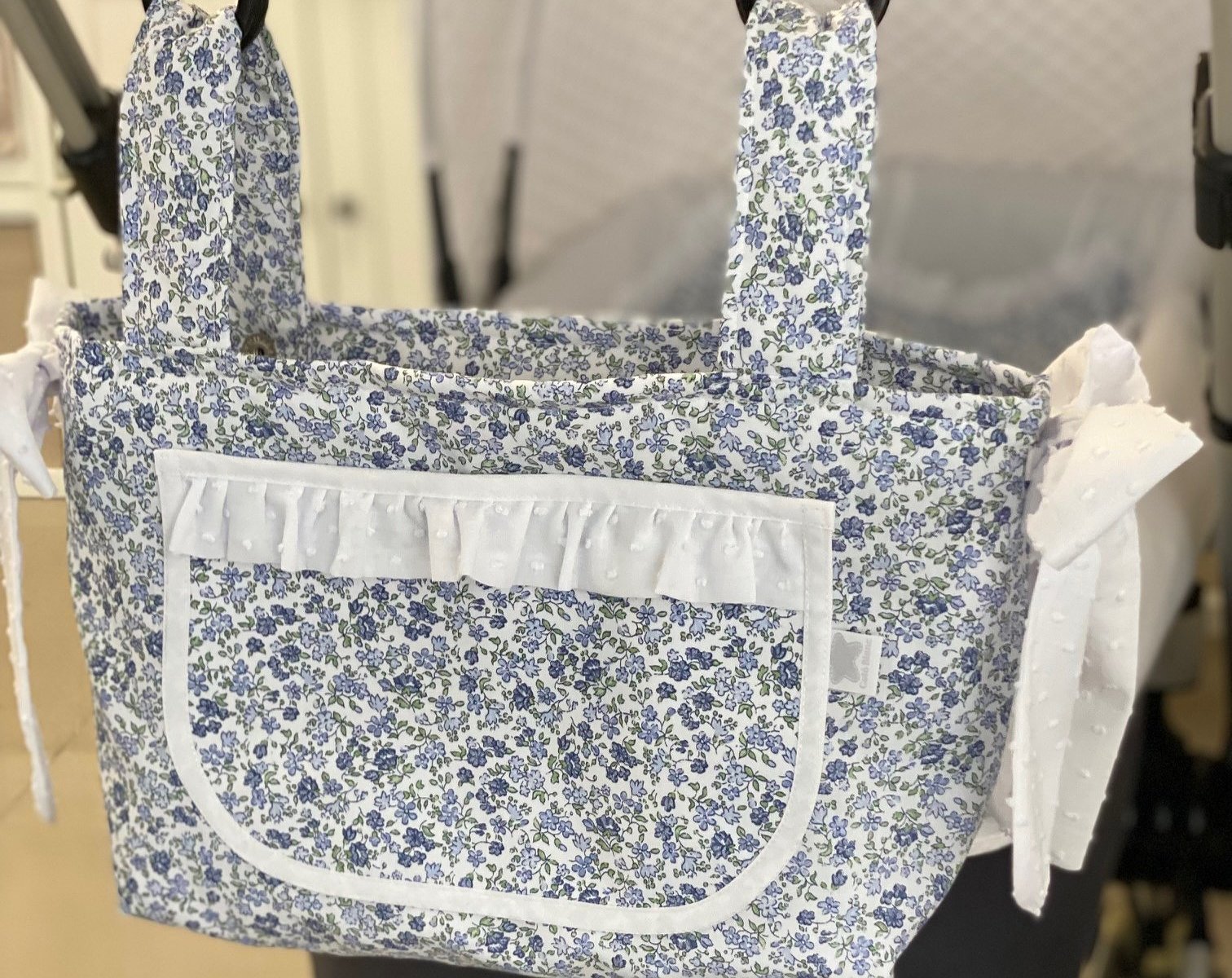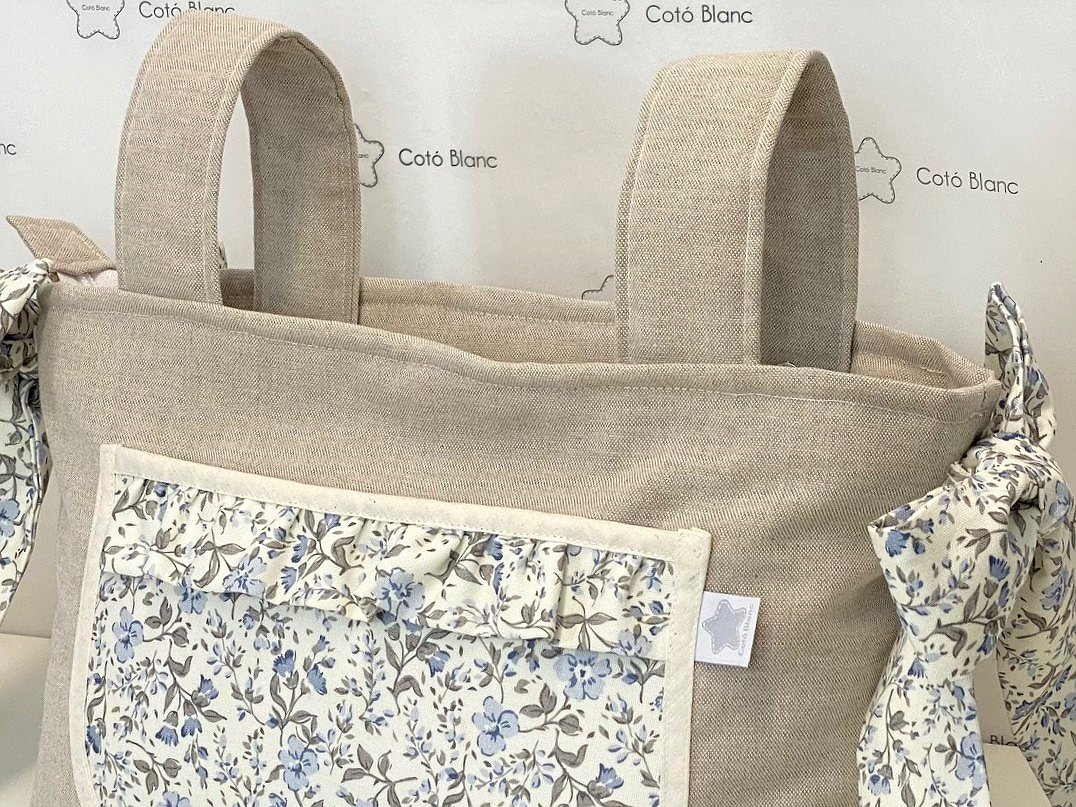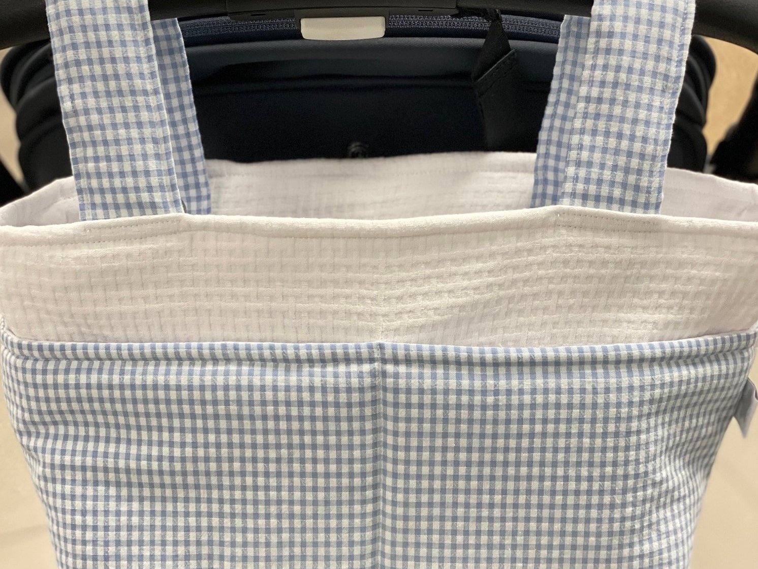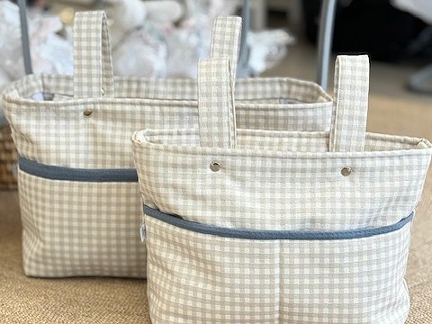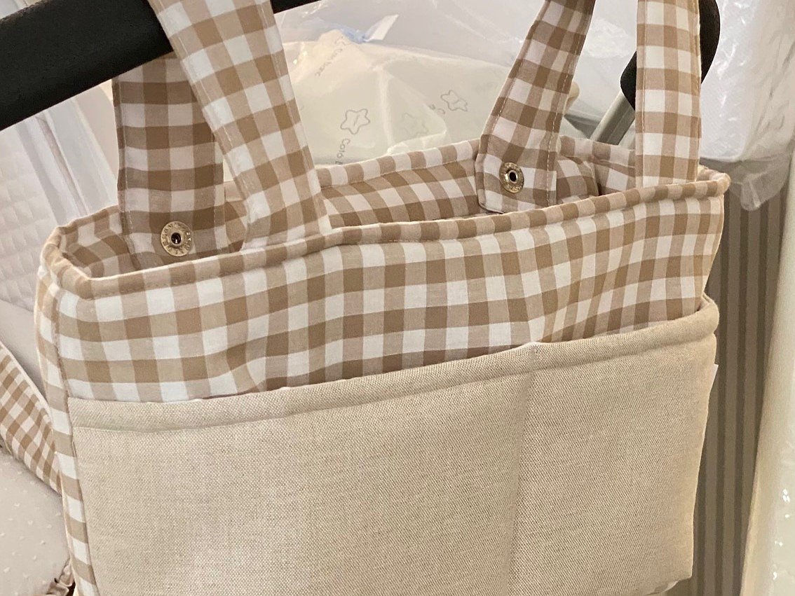 Bolsa panera Mini para cochecito en tela que lleva dos asas para que la puedas sujetar al manillar .