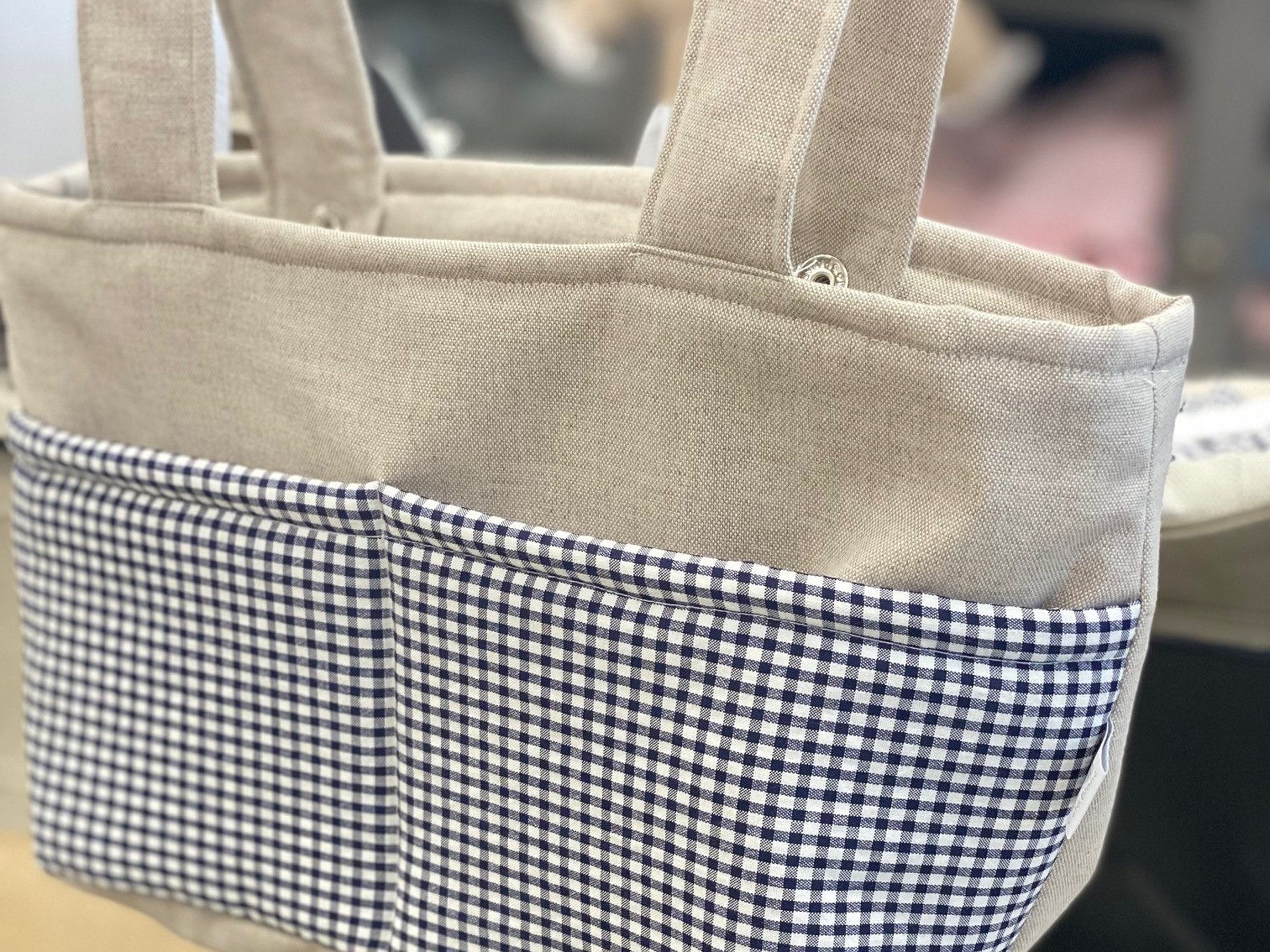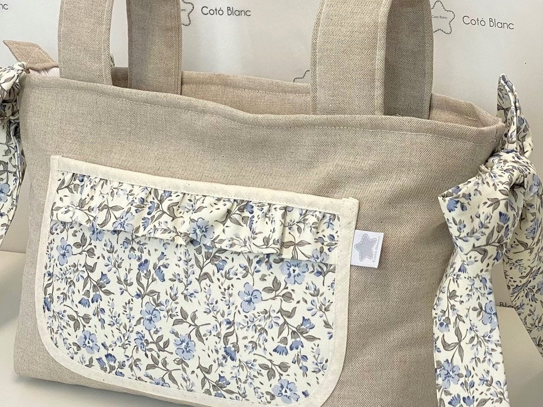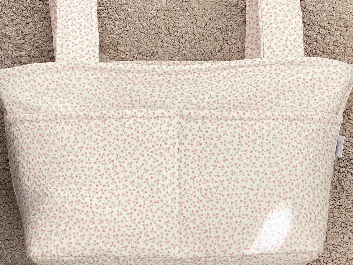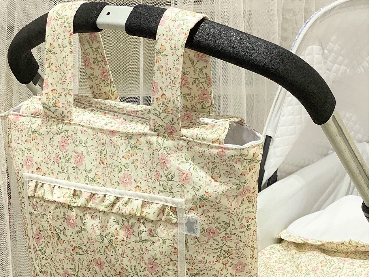 Bolsa panera Mini para cochecito en tela que lleva dos asas para que la puedas sujetar al manillar .