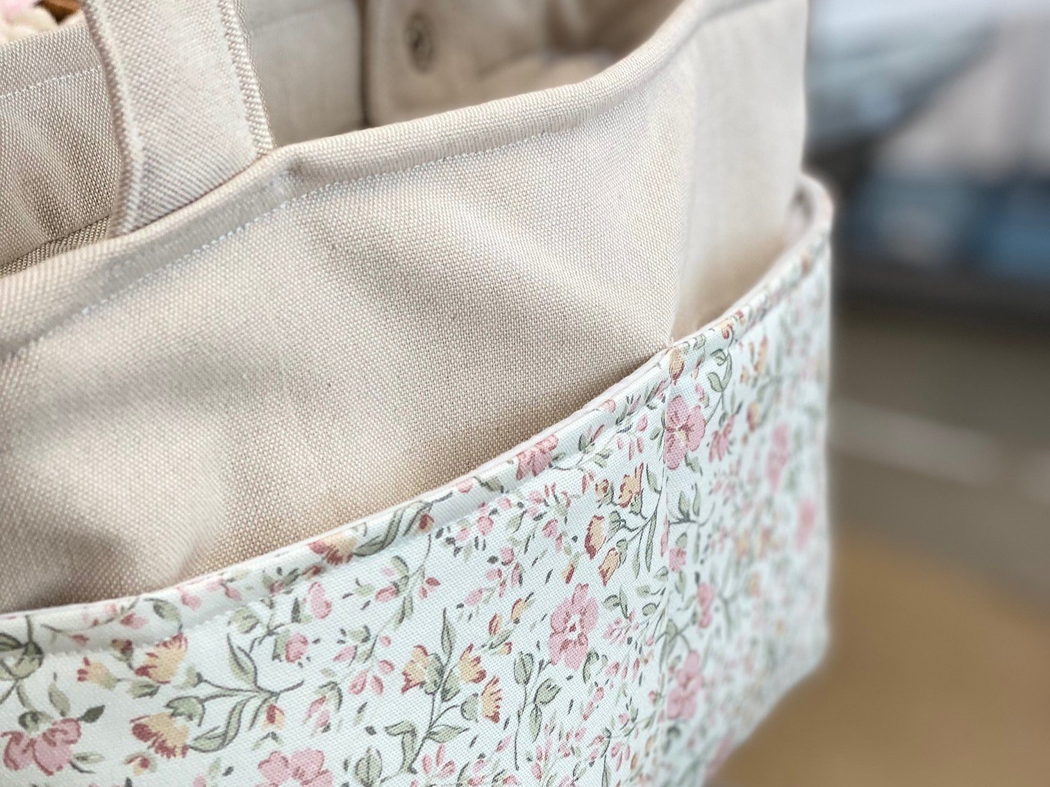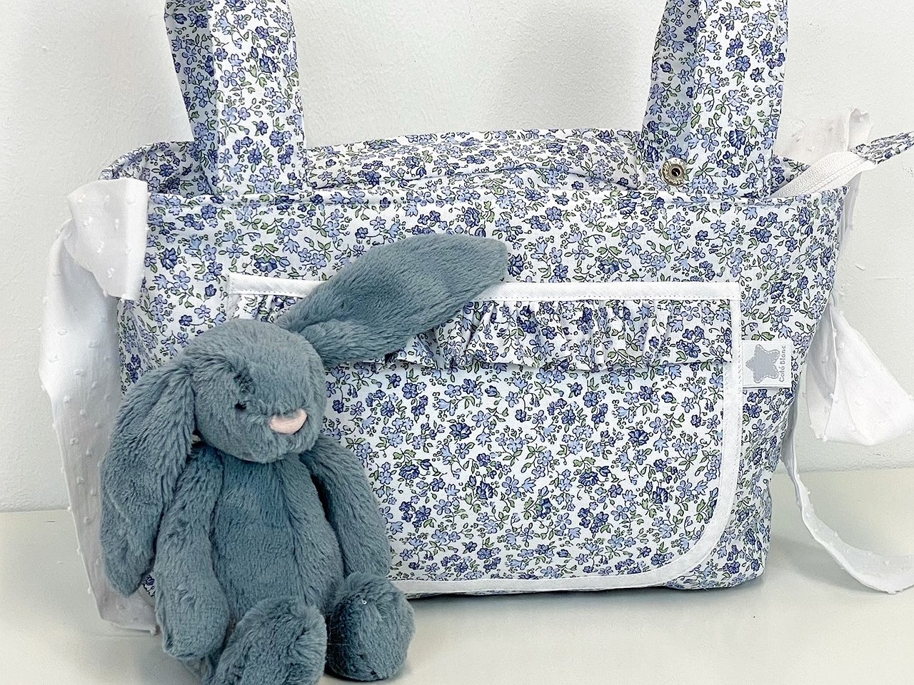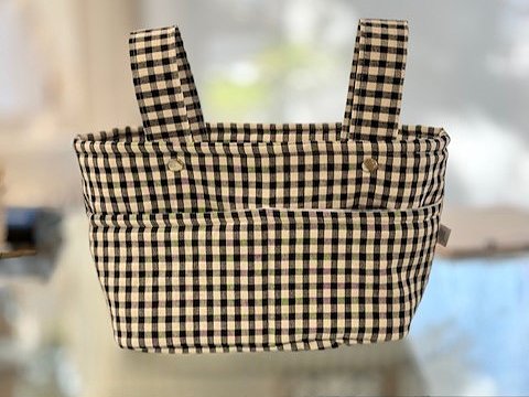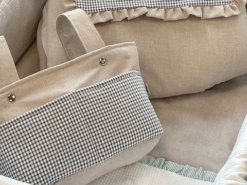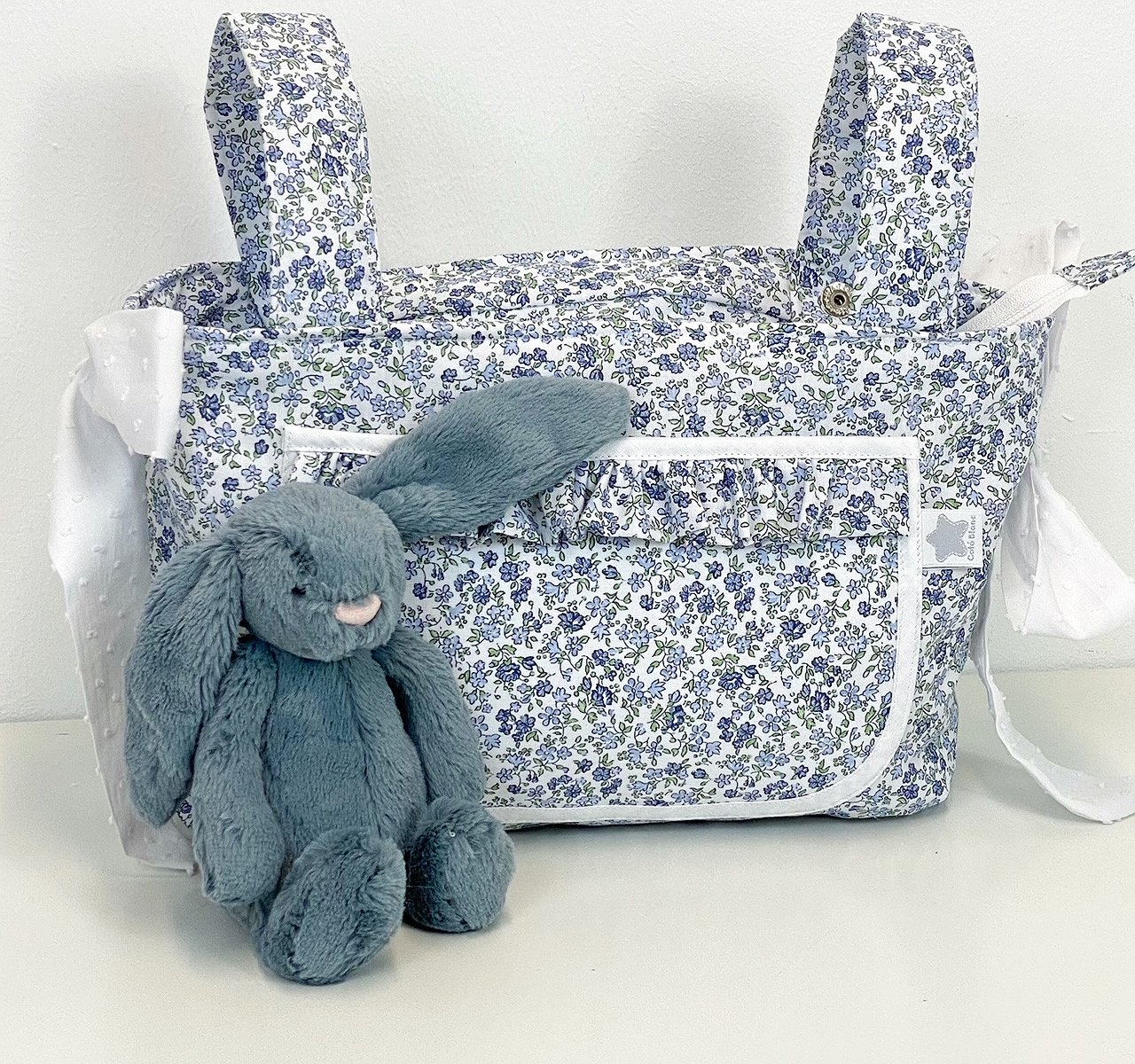 Bolsa panera Mini para cochecito en tela que lleva dos asas para que la puedas sujetar al manillar .
