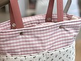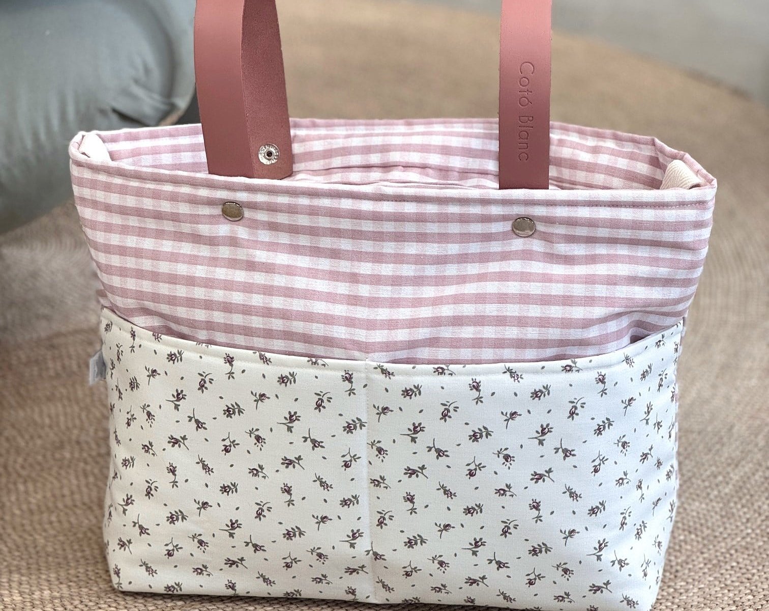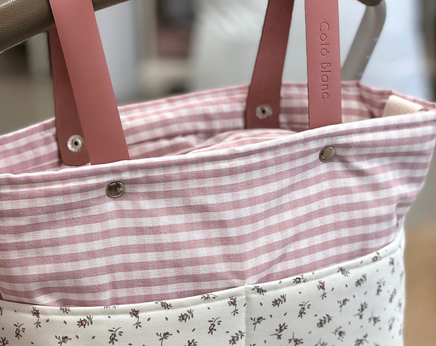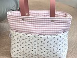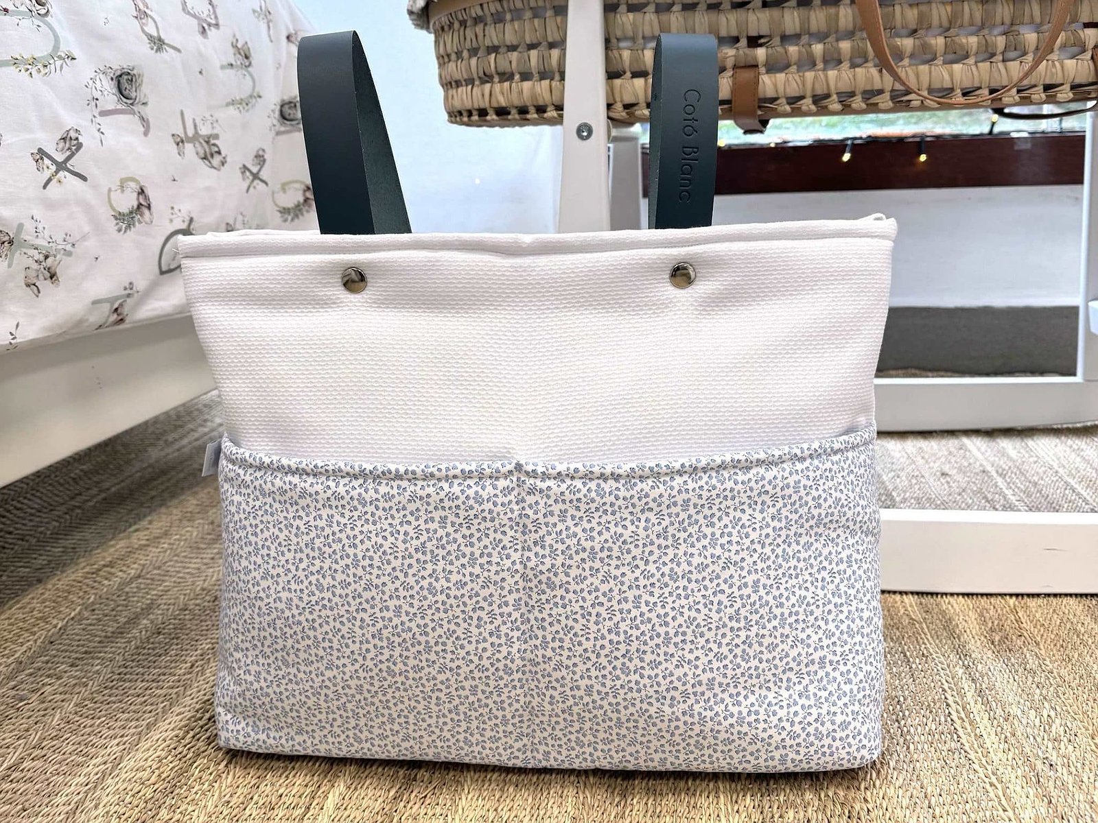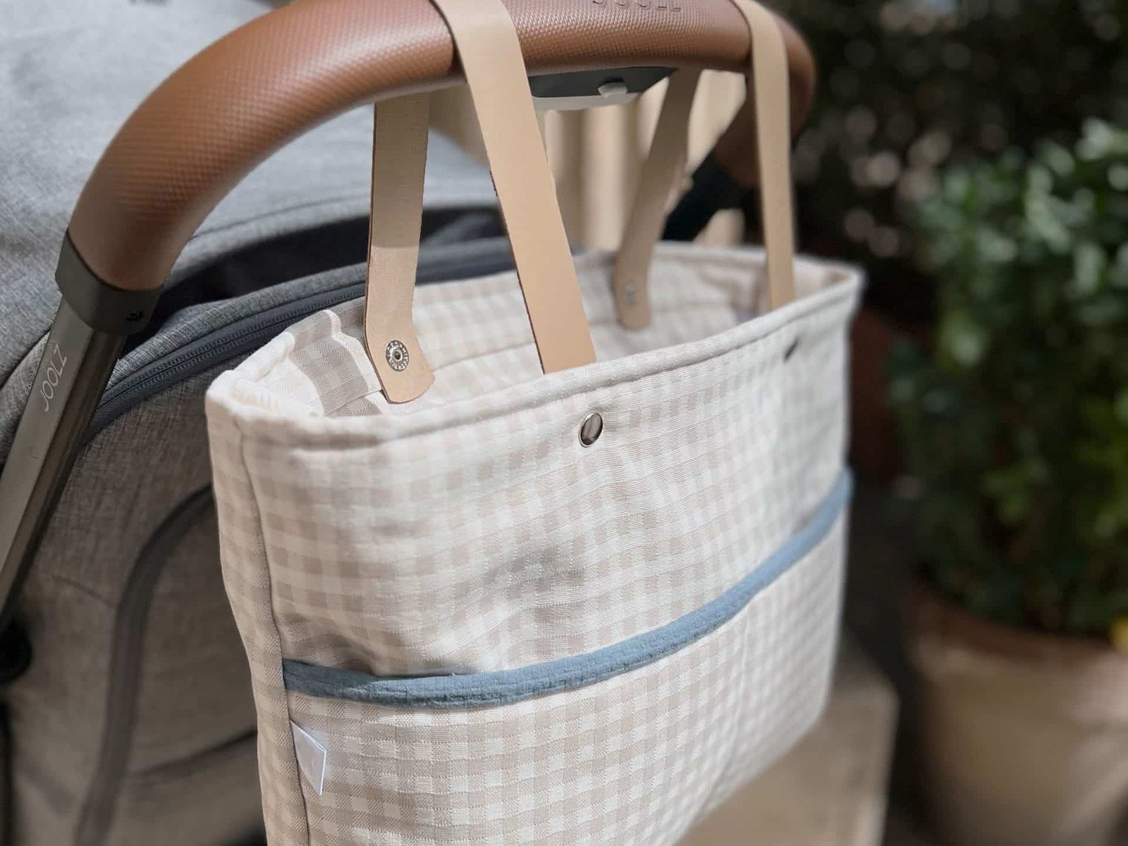 Bolsa panera para cochecito en tela con asas de piel