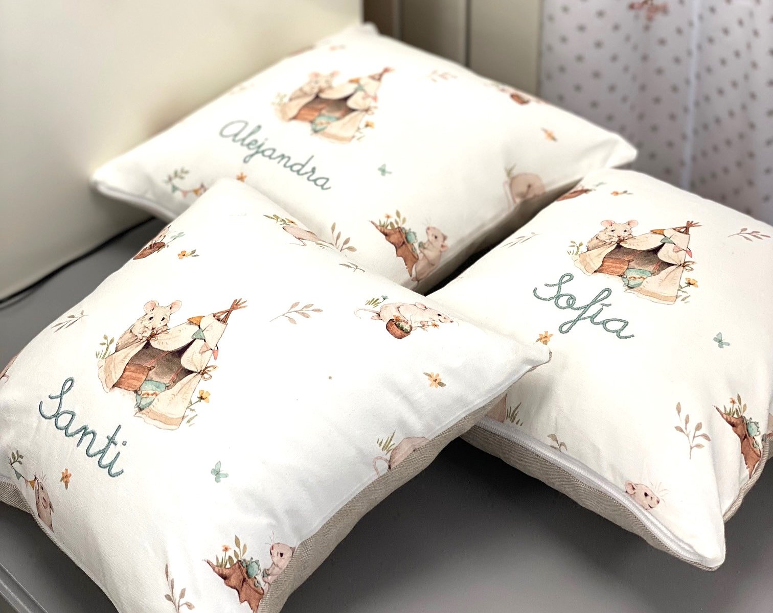 Cojín ratoncito Pérez confeccionado con tela de alta calidad. ¡Ideal para decorar la habitación de los niños!