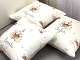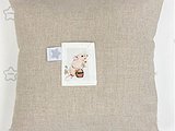 El bolsillo está situado en la parte de detrás y lleva aplicado con tela el muñequito del ratoncito. Incluye relleno extraíble.