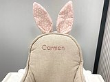Así la funda incluye relleno de fibra para que el niño este más cómodo, y las orejas del conejito se mantiene tiesas.nIndícanos también el color de las orejas con la tela que más te guste