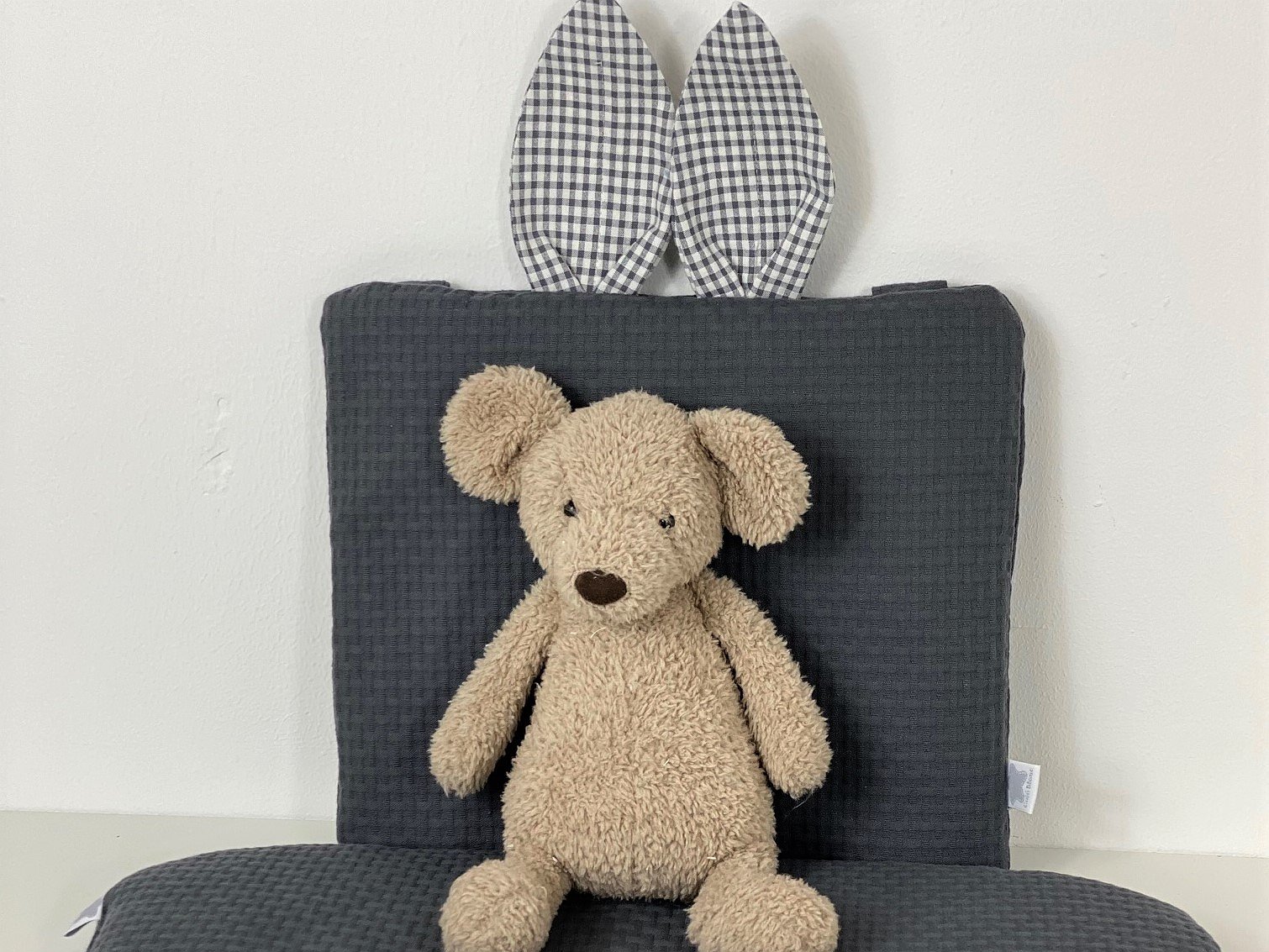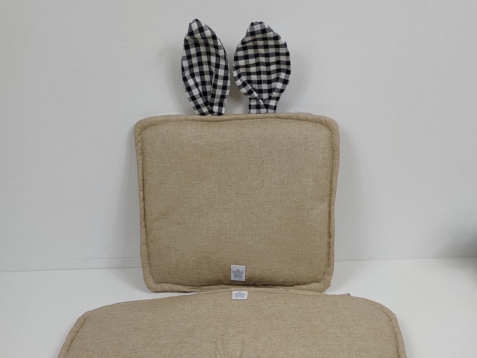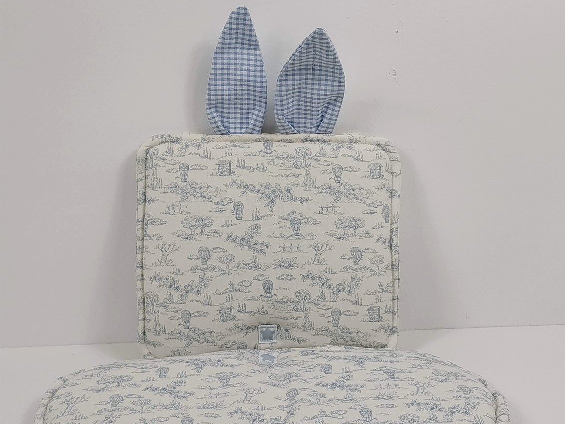 Cojín Trona Safety 1st Timba con orejas personalizada con las telas que más te gusten. Se compone de las dos piezas, asiento y respaldo.