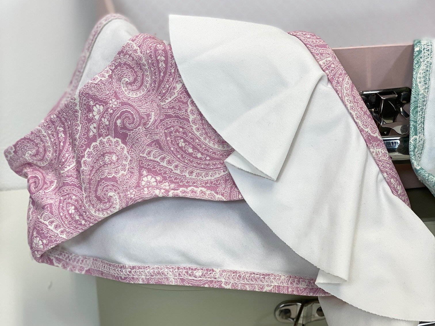 Culetín niña cashmir rosa o verde con volante blanco en todo su alrededor.