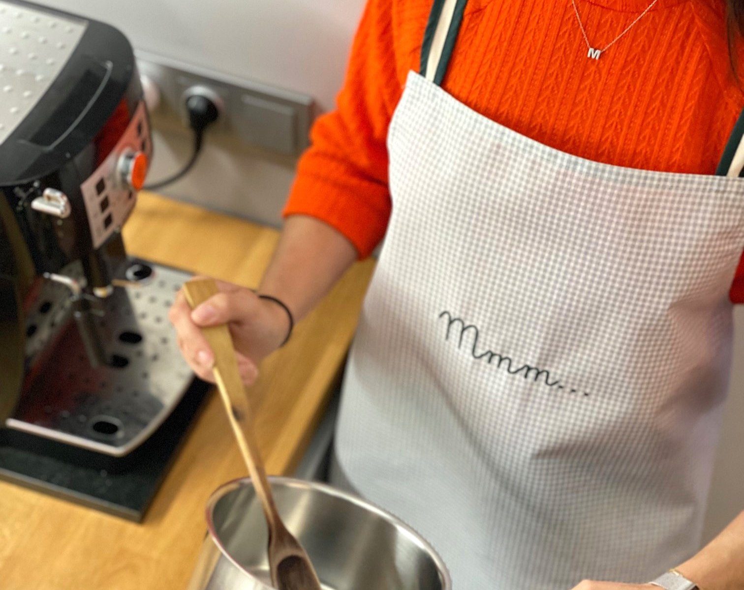 Puedes elegir la tela de loneta que más te guste para personalizar el delantal, y si quieres también puedes incluir el nombre con la tela que te guste.