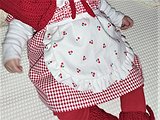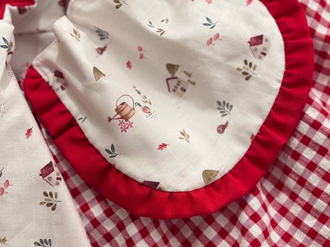 Disfraz caperucita roja para bebé, compuesto por la vestido de tirantes con delantal unido por dos costuras para que no se caiga y se más cómodo para la niña.