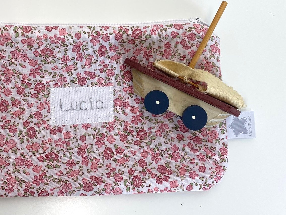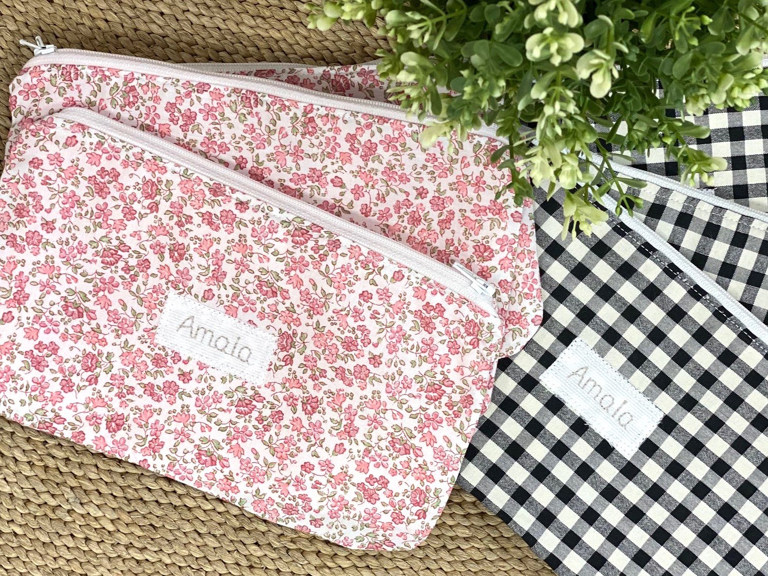 El exterior del estuche puedes personalizarlo con la tela que más te guste. La tela interior la elegiremos nosotros para que combine perfectamente.