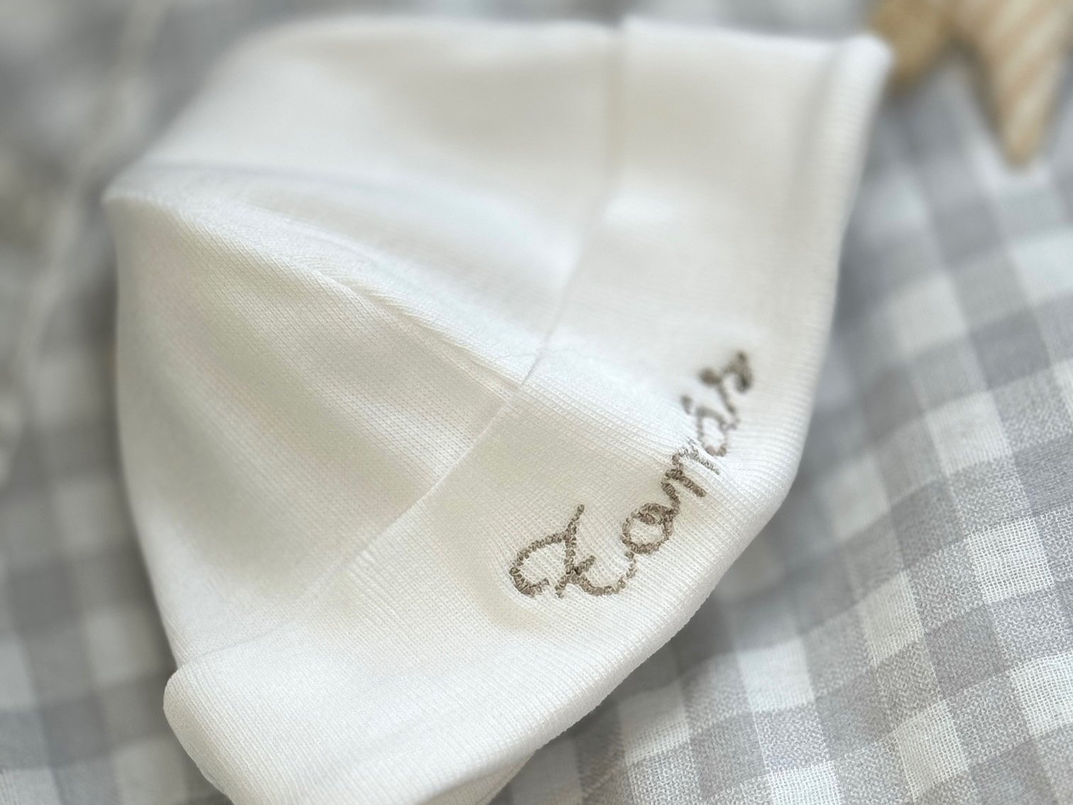 Gorrito para hospital primera puesta confeccionado en algodón 100%. Sin duda alguna, un básico imprescindible para tu bebé en el momento del nacimiento