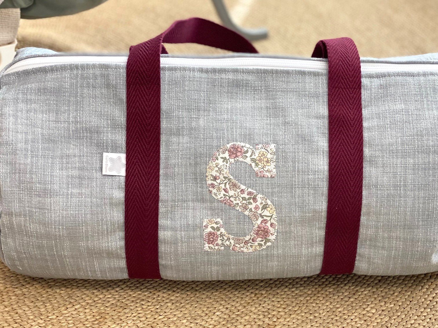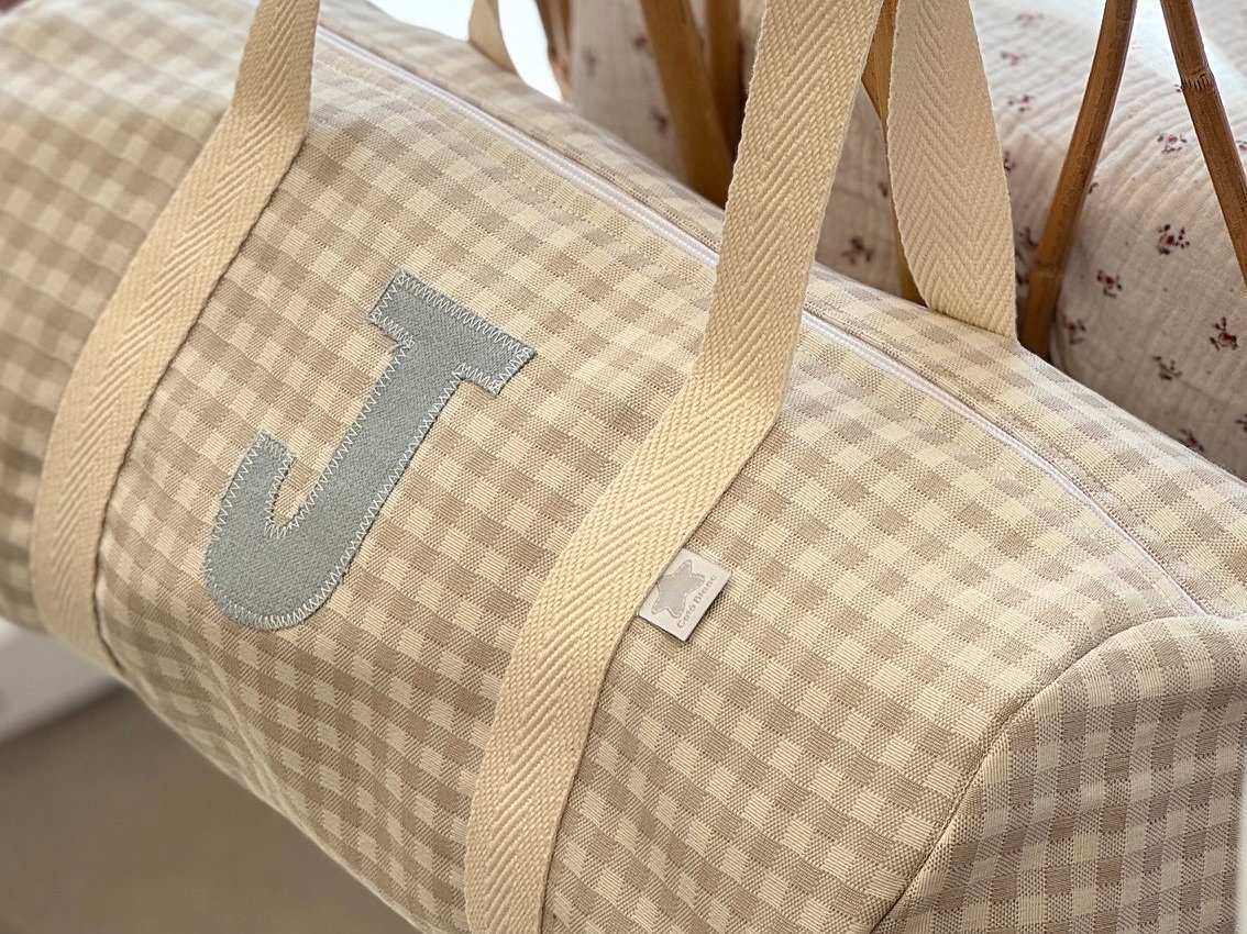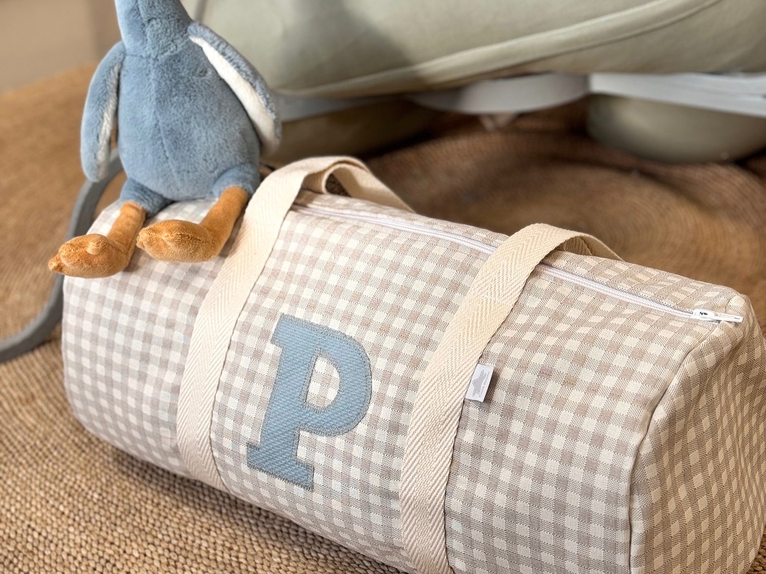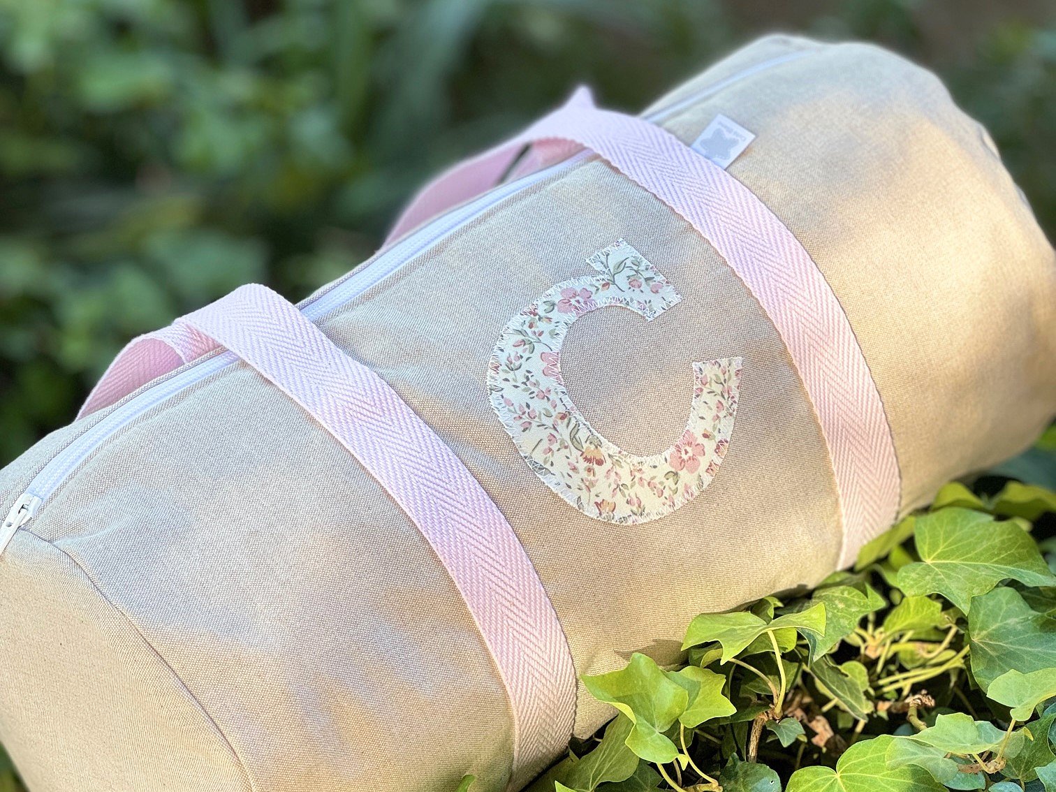 Macuto extraescolar con inicial o detalle aplicado, personalizado con la tela que más te guste acolchada y con asas de mano para coger.