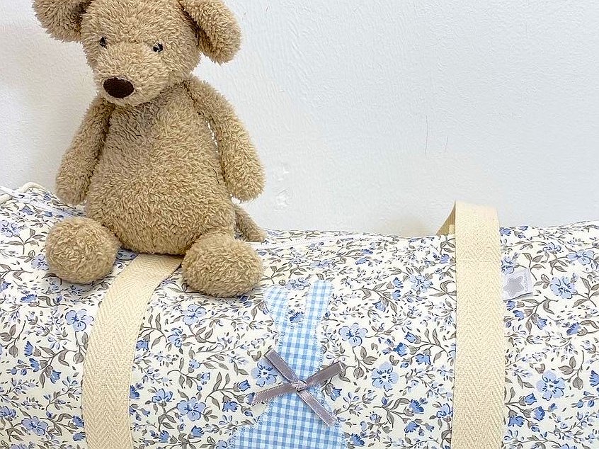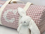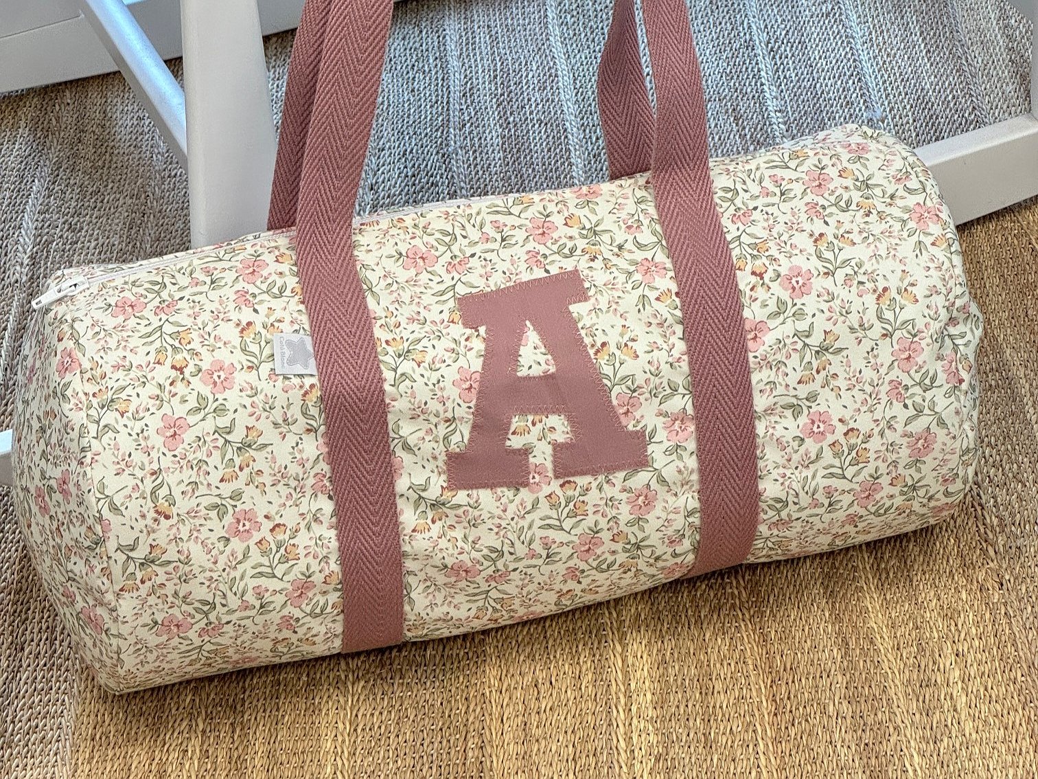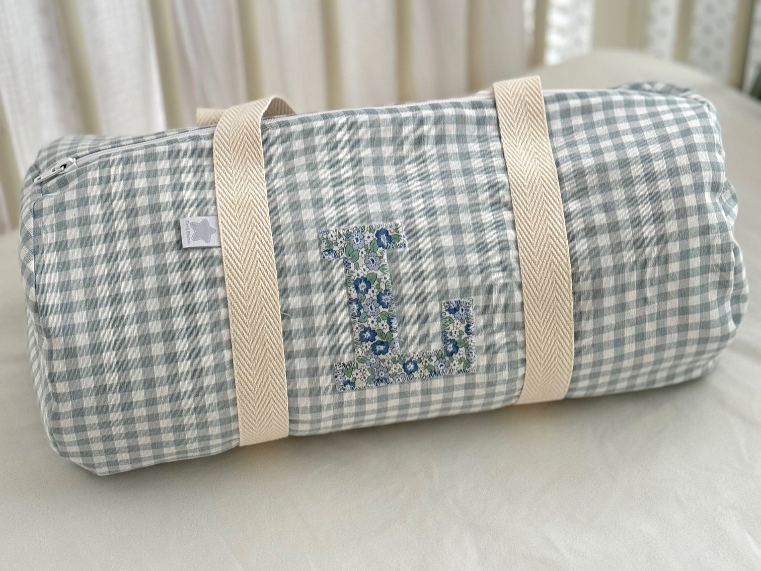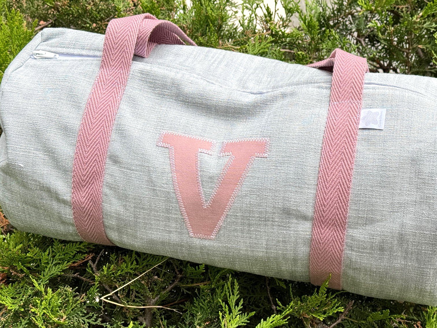 Macuto extraescolar con inicial o detalle aplicado, personalizado con la tela que más te guste acolchada y con asas de mano para coger.