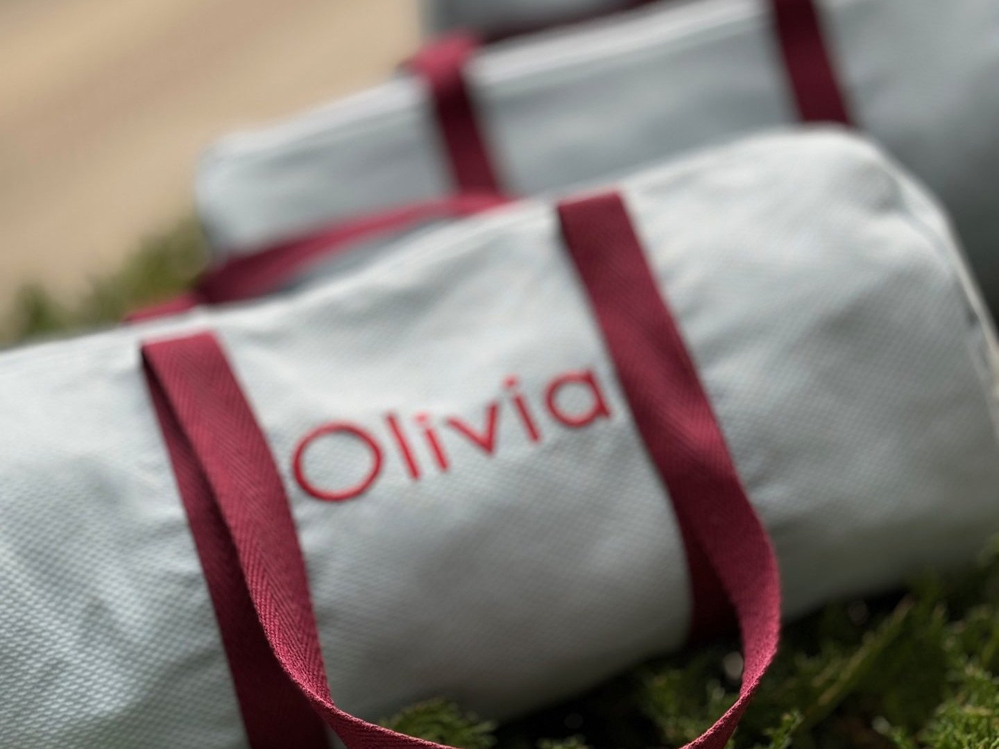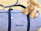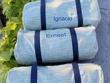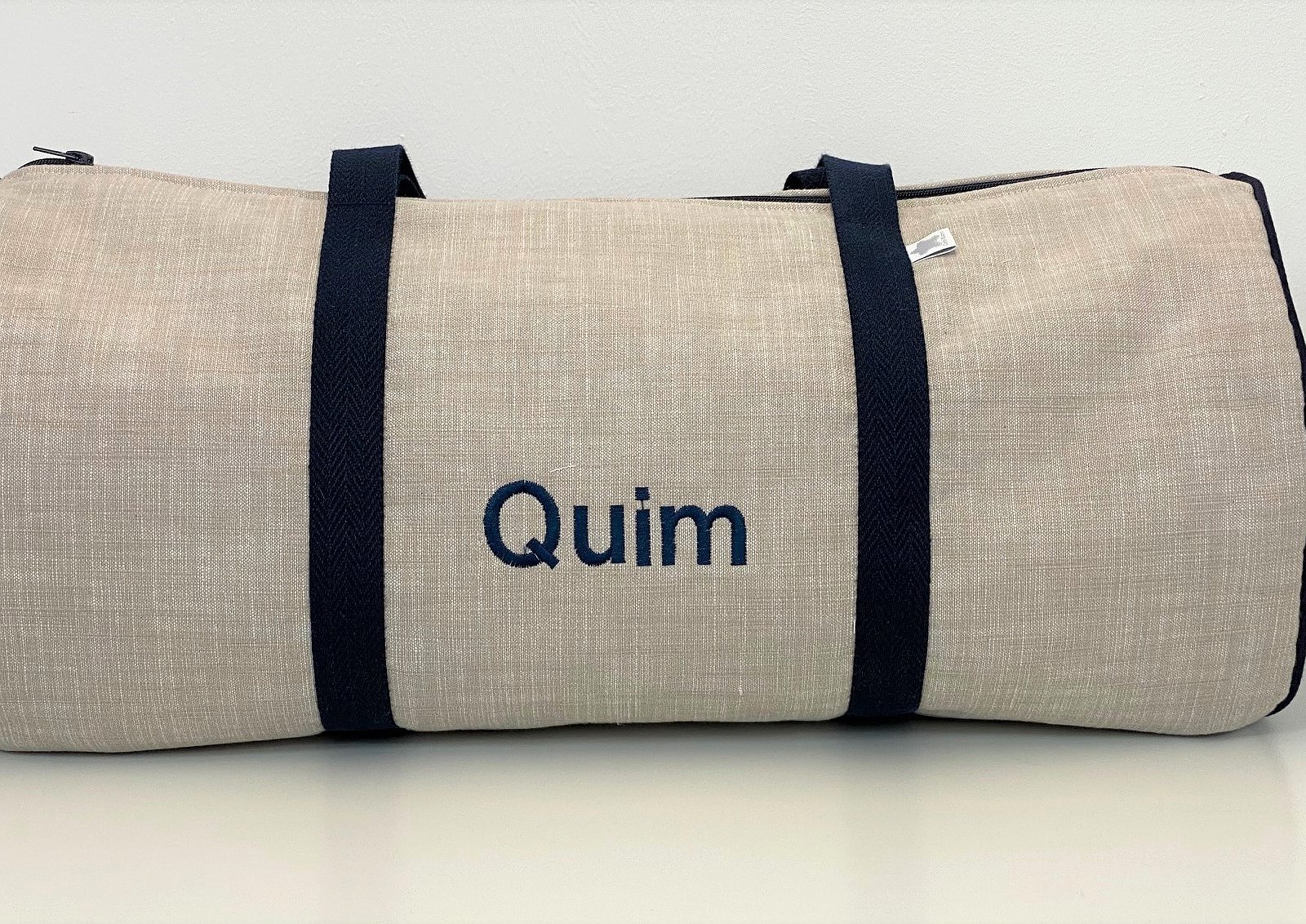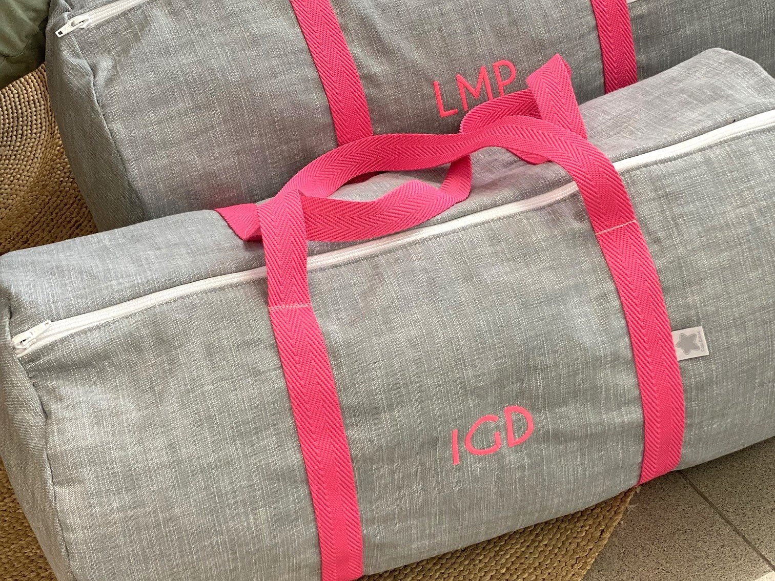 Macuto extraescolar con nombre bordado a máquina personalizado con la tela que más te guste, acolchado y con asas de mano para coger.