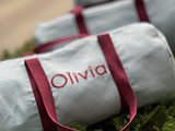 Las asas puedes elegirlas a tu gusto y combinarlas con el bordado. Las asas pueden ser en varios colores : crema, azul marino, verde botella, granate, blanca... Elige la inicial que quieras ponerle.