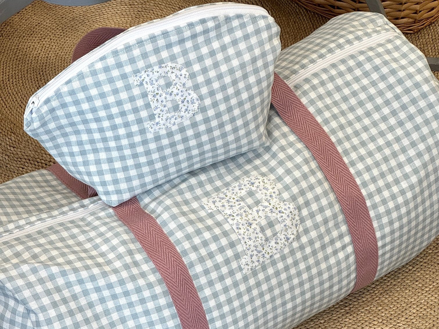 Macuto weekend con inicial o detalle aplicado en la tela que más te guste acolchada y con asas de mano para coger.