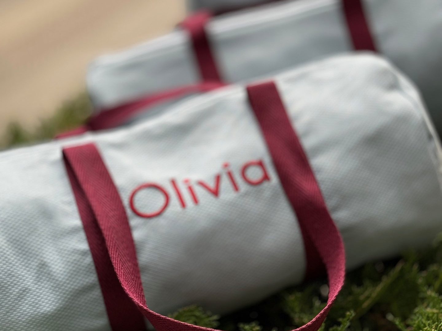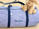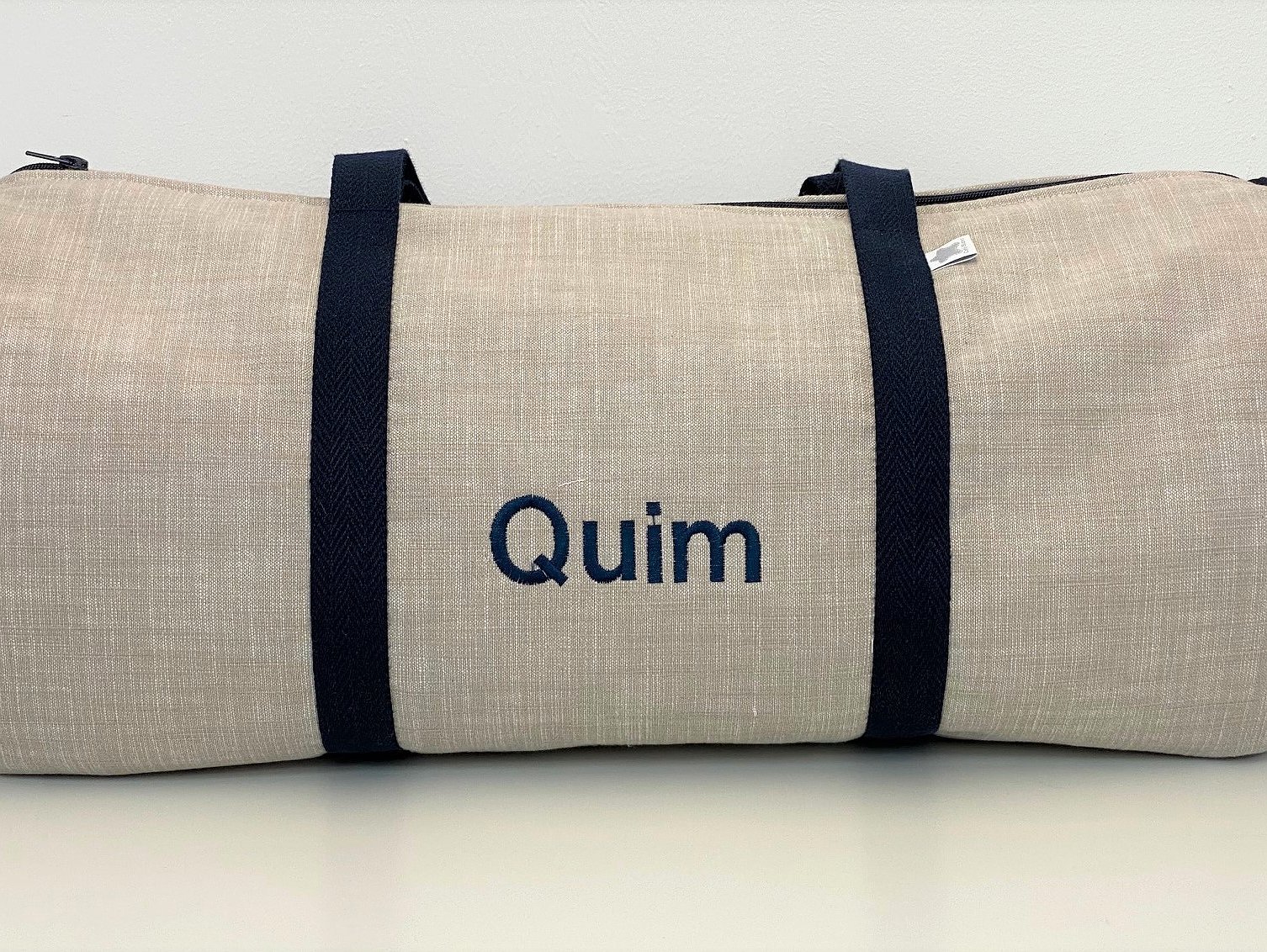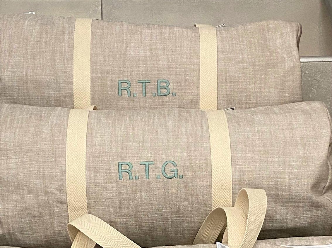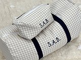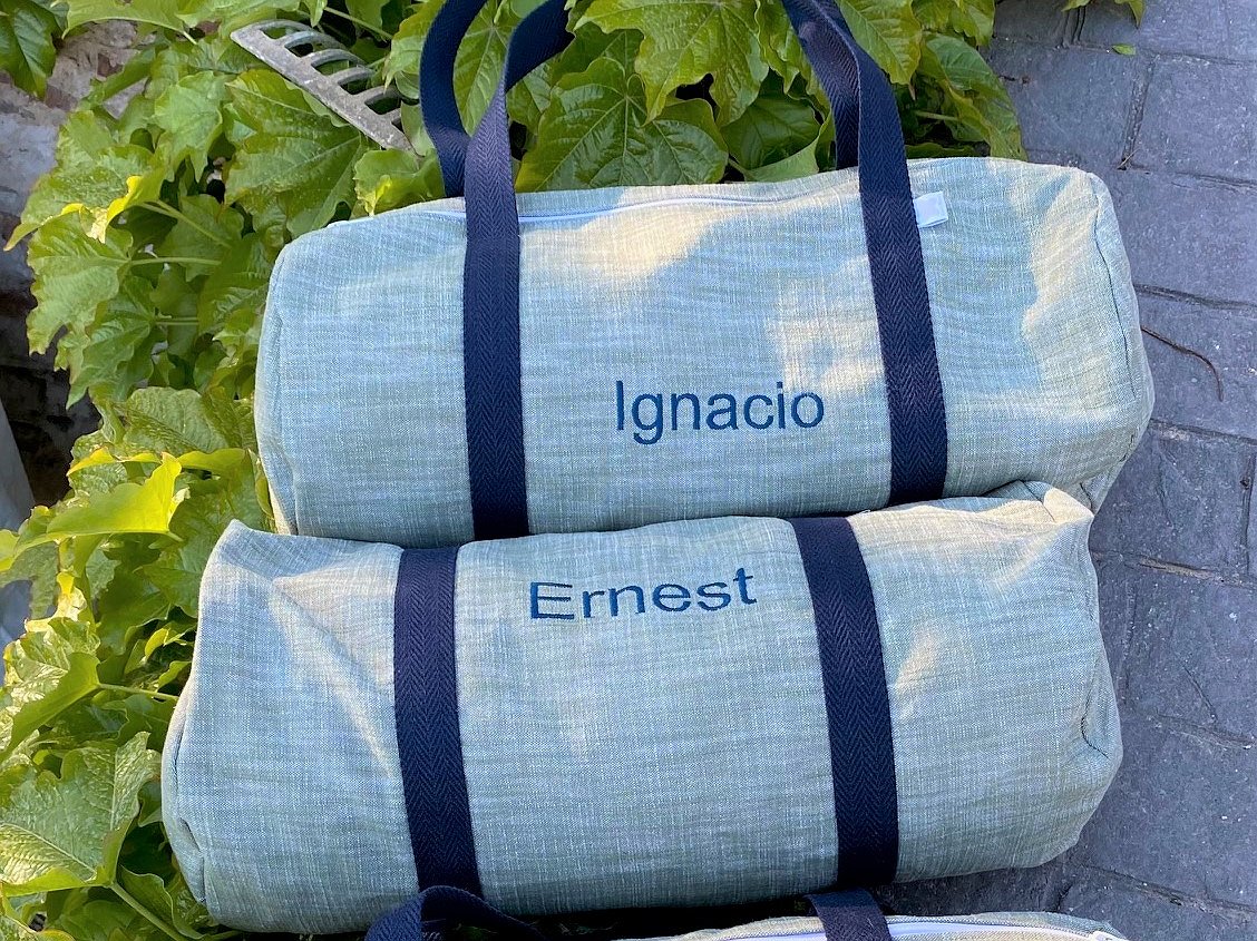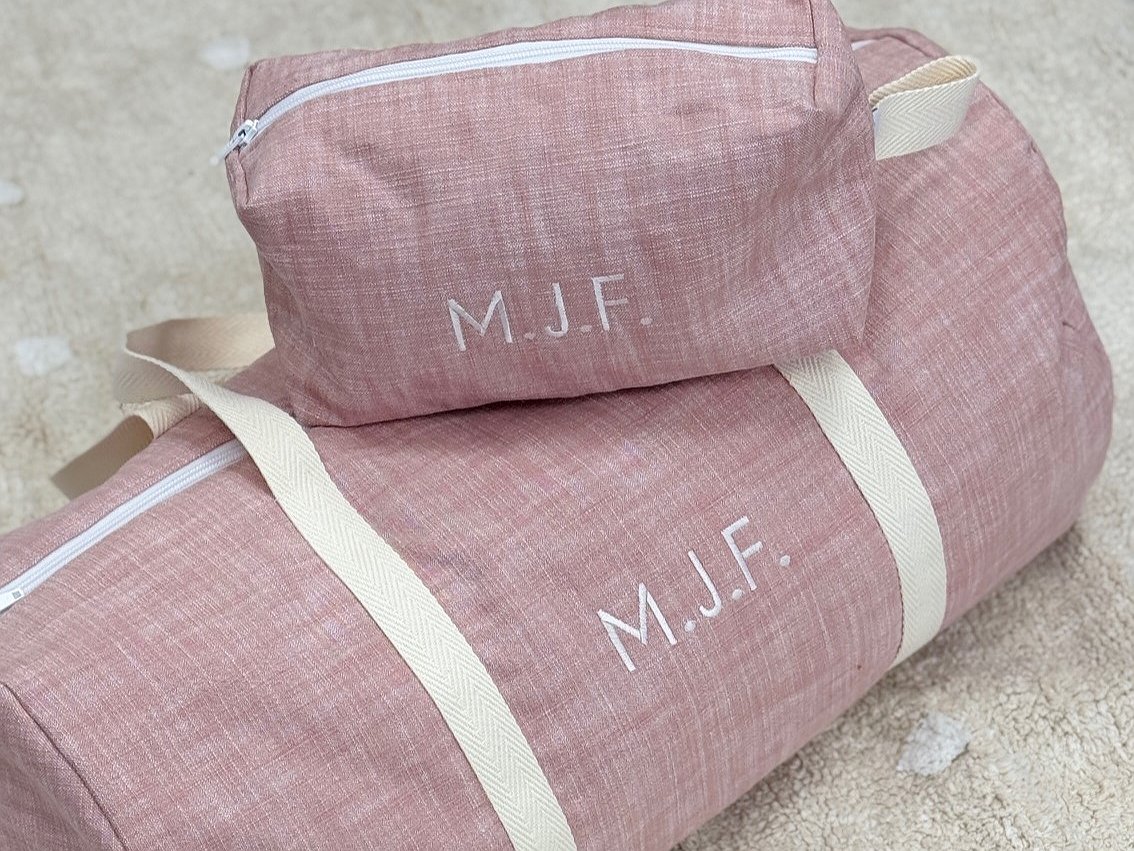 Macuto weekend con nombre bordado a máquina personalizado con la tela que más te guste acolchada y con asas de mano para coger.