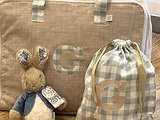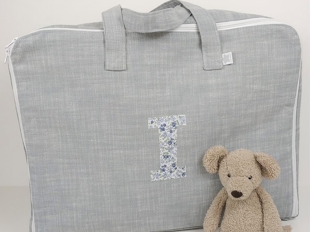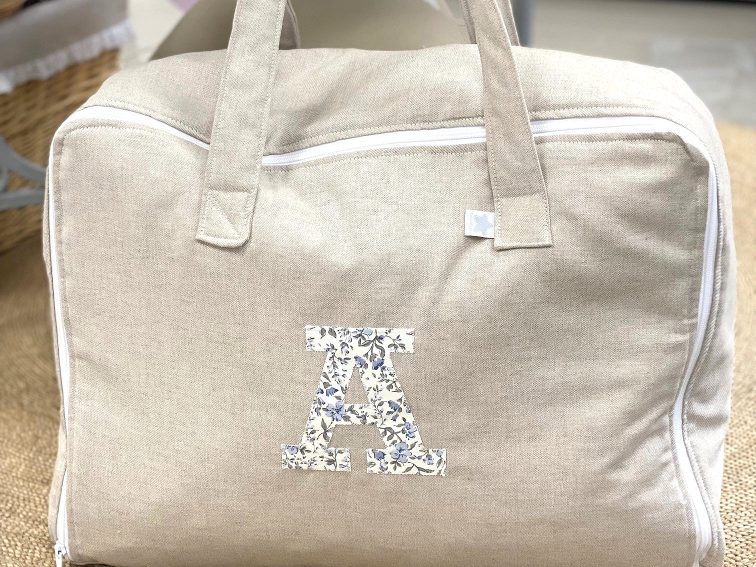 Maleta de tela personalizada modelo Elena con inicial o detalle .
