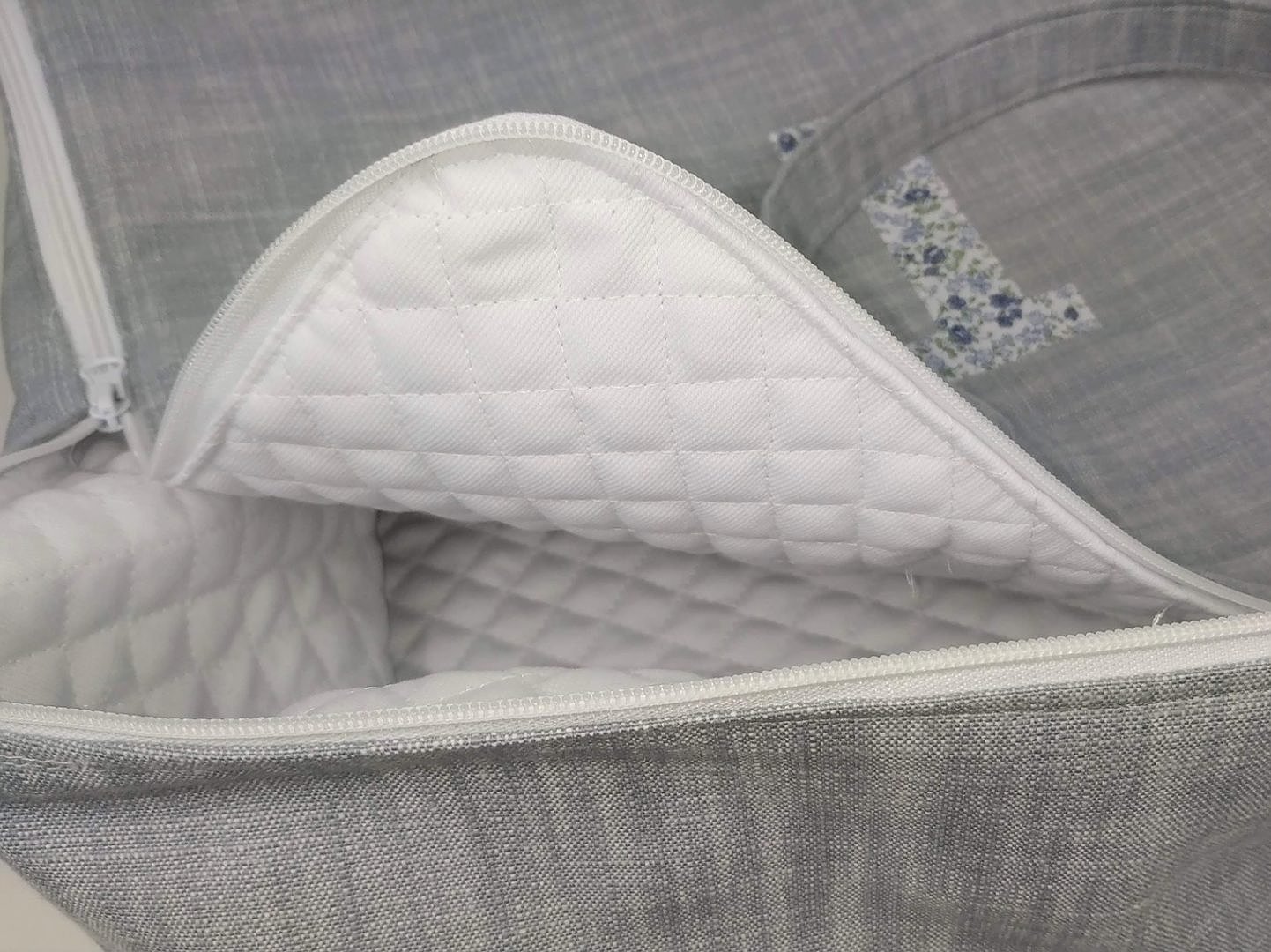 Cuenta con cierre de cremallera en todo el contorno en C. Lleva en su interior forro de piqué acolchado. No es rígida ya que no lo necesita