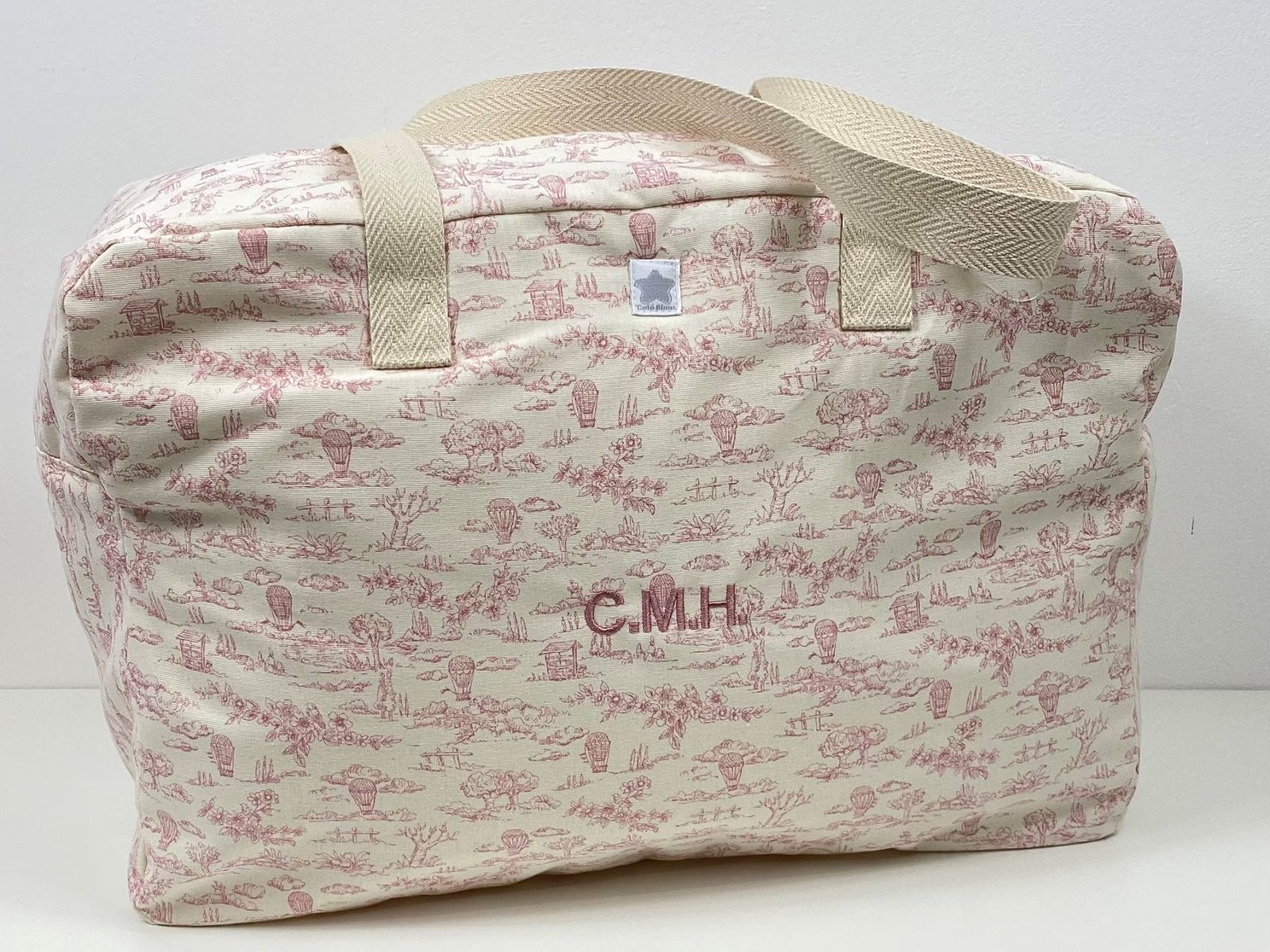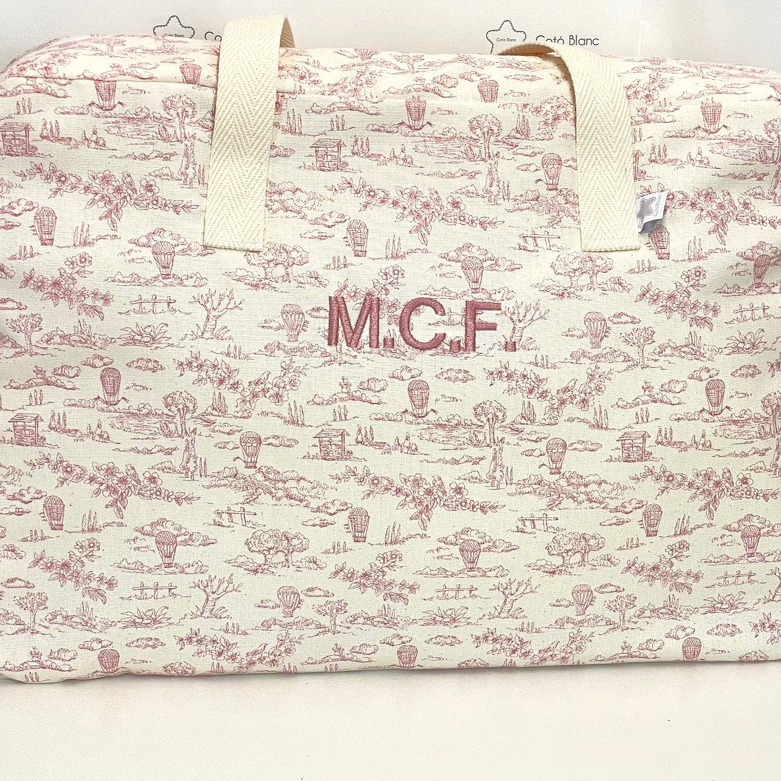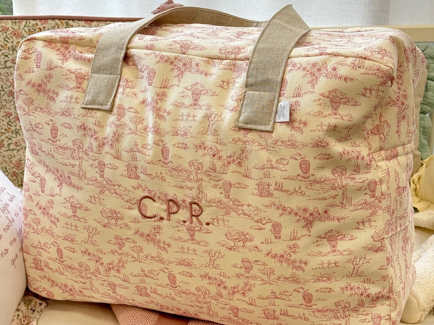Maleta de tela personalizada modelo Mireia bordada . Un diseño rectangular perfecto para usar como maleta de fin de semana.