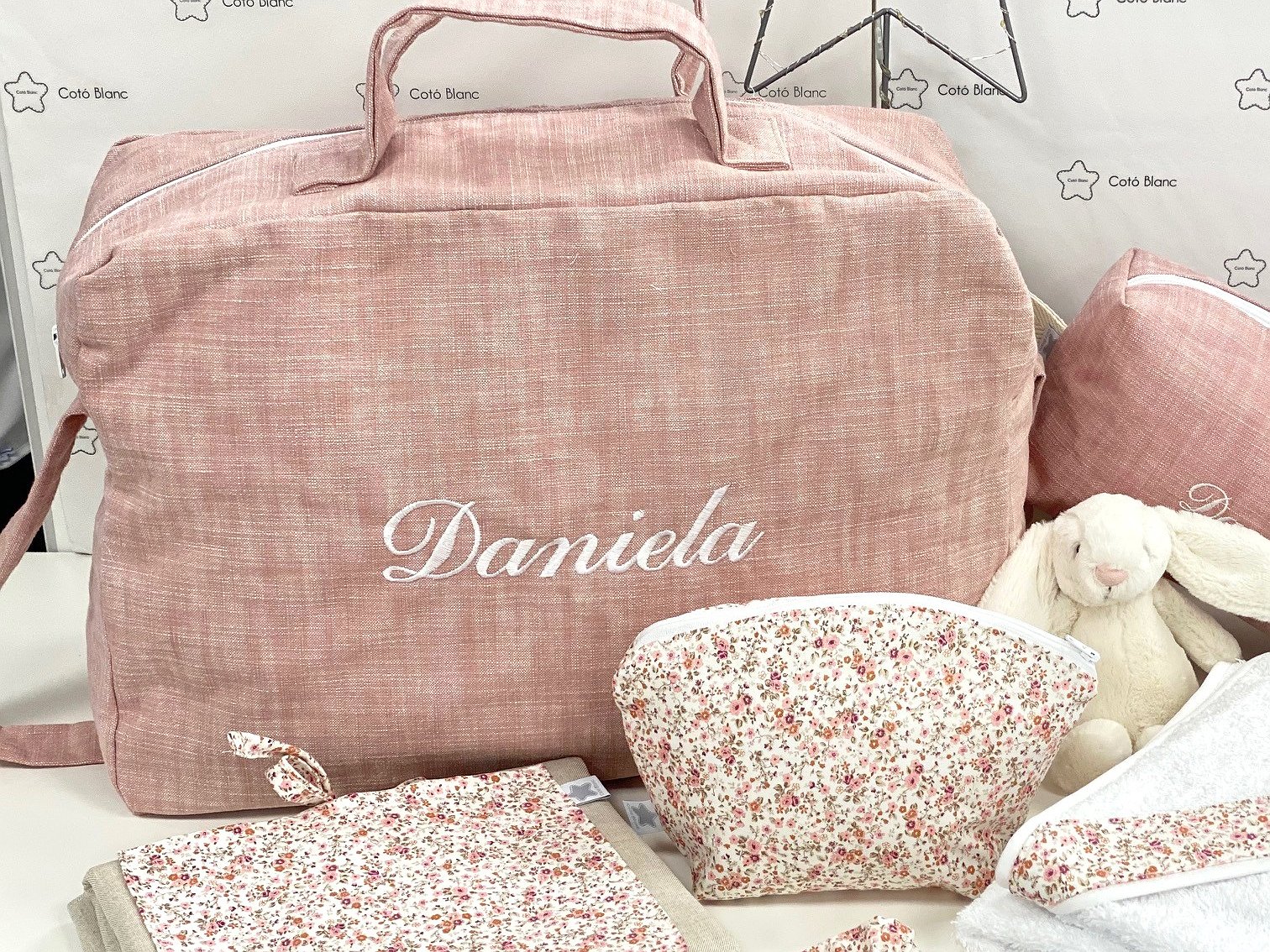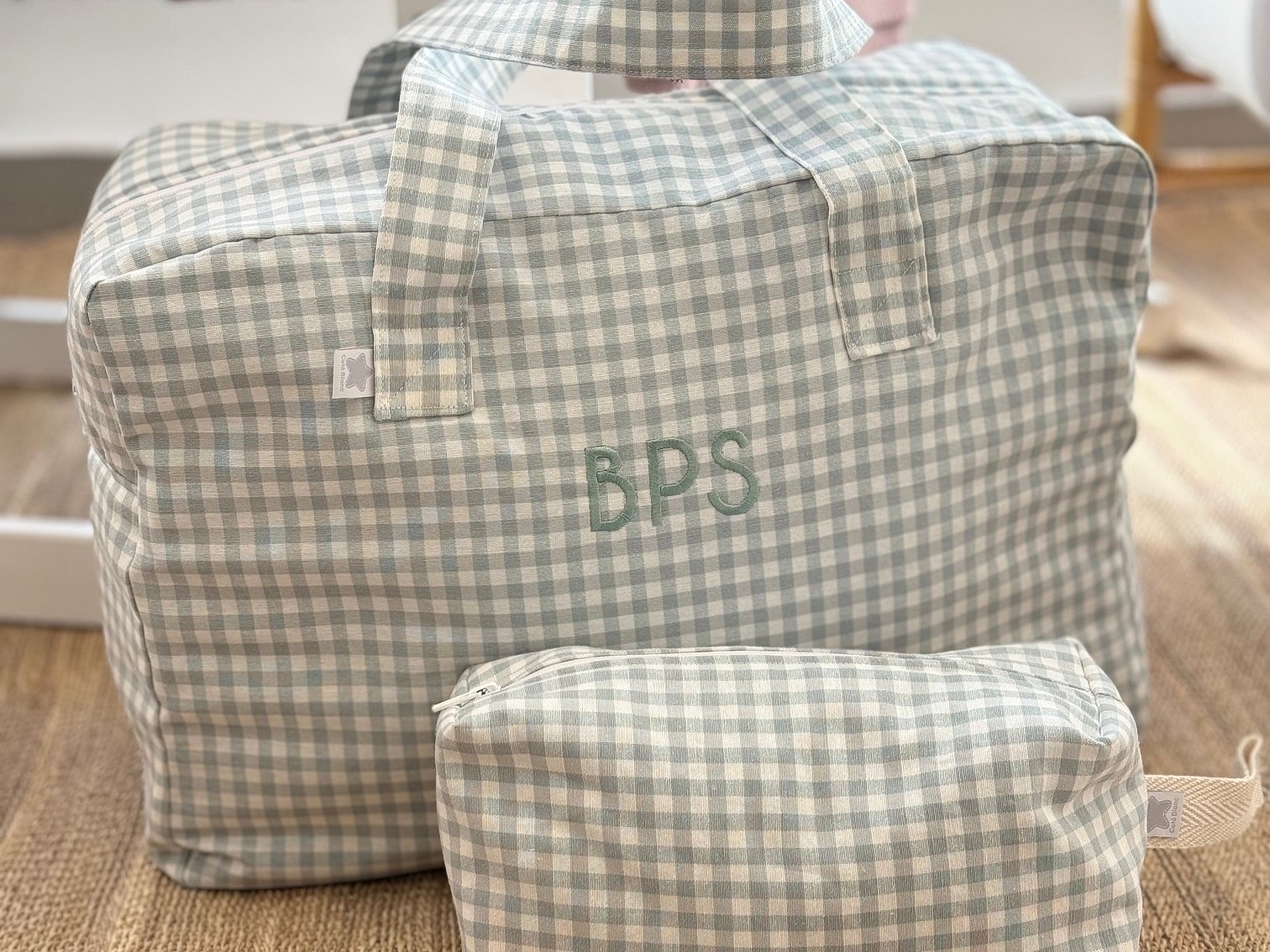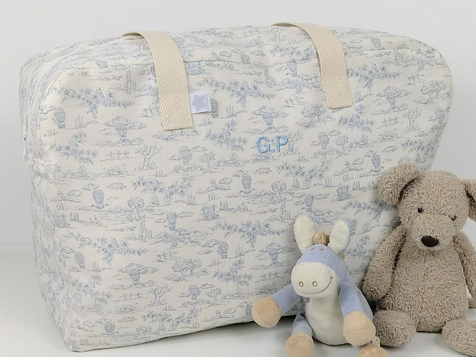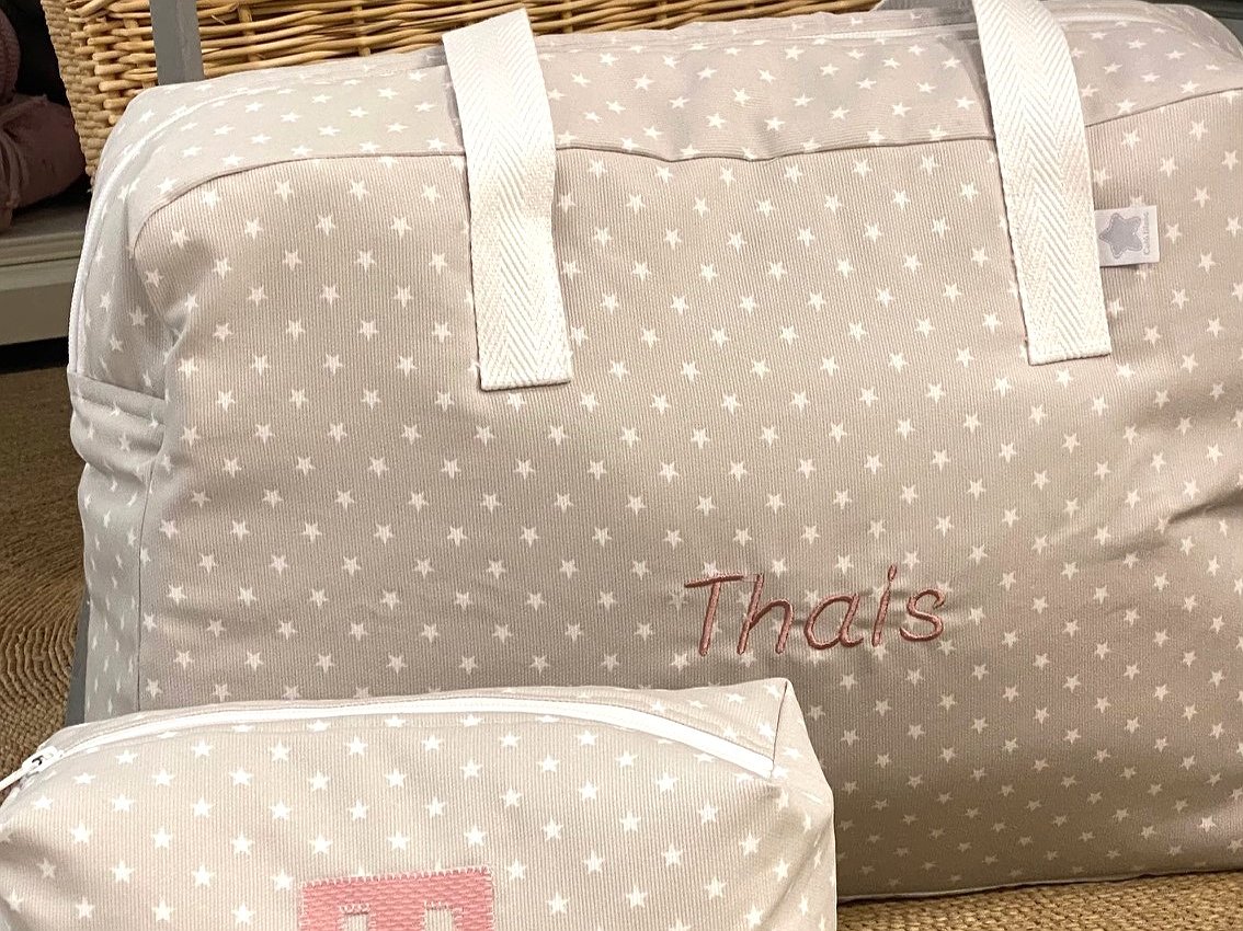 Maleta de tela personalizada modelo Mireia bordada . Un diseño rectangular perfecto para usar como maleta de fin de semana.