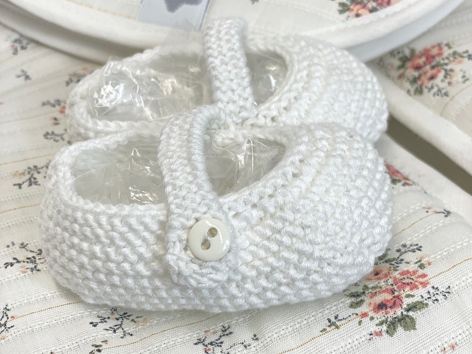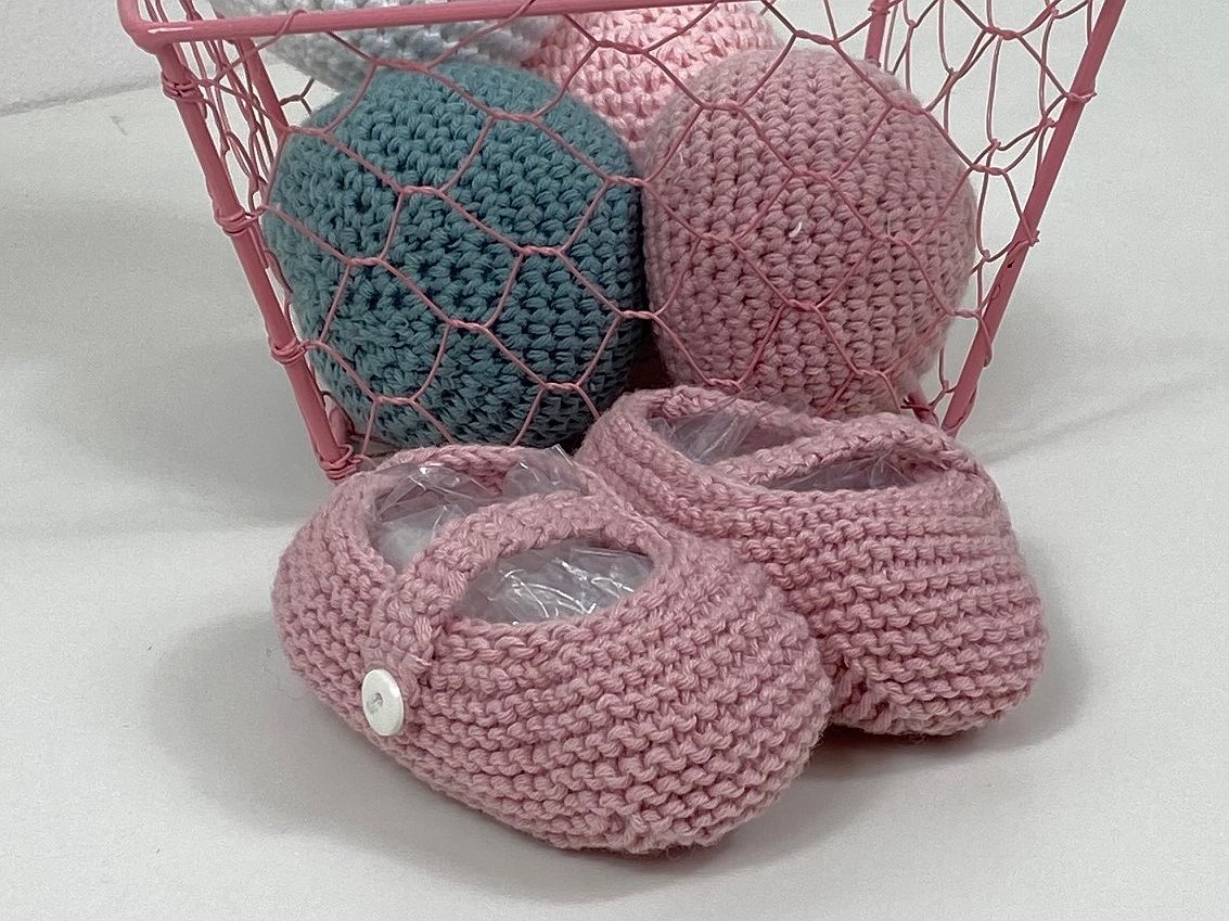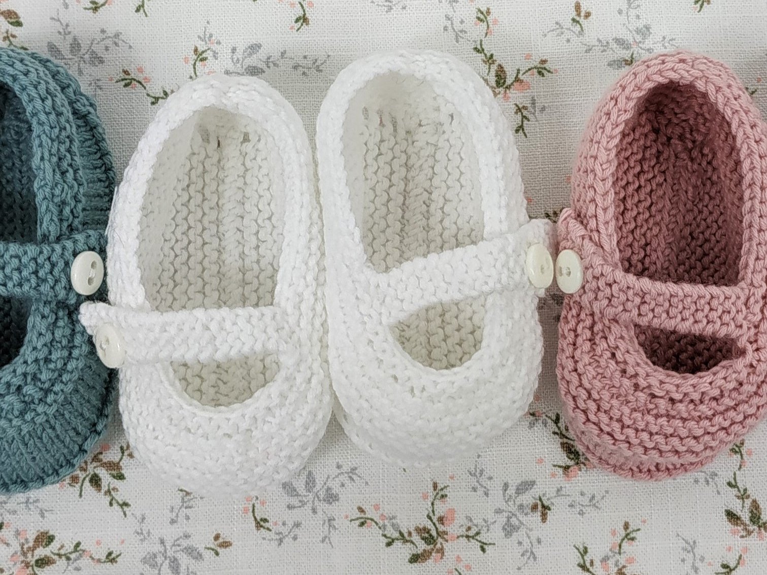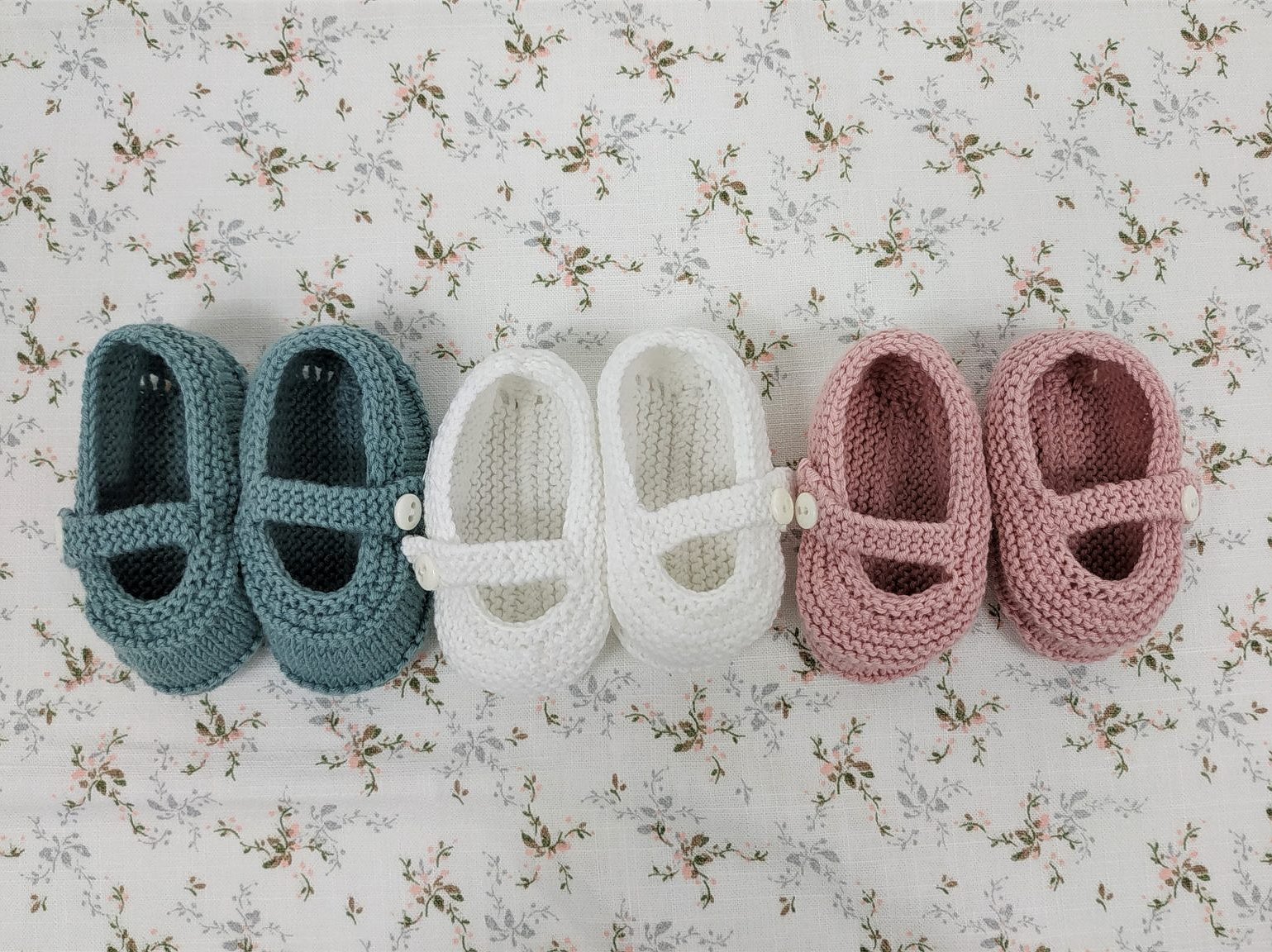 Merceditas hechas a mano en punto de algodón , de textura muy suave y agradable a los pies de tu peque.