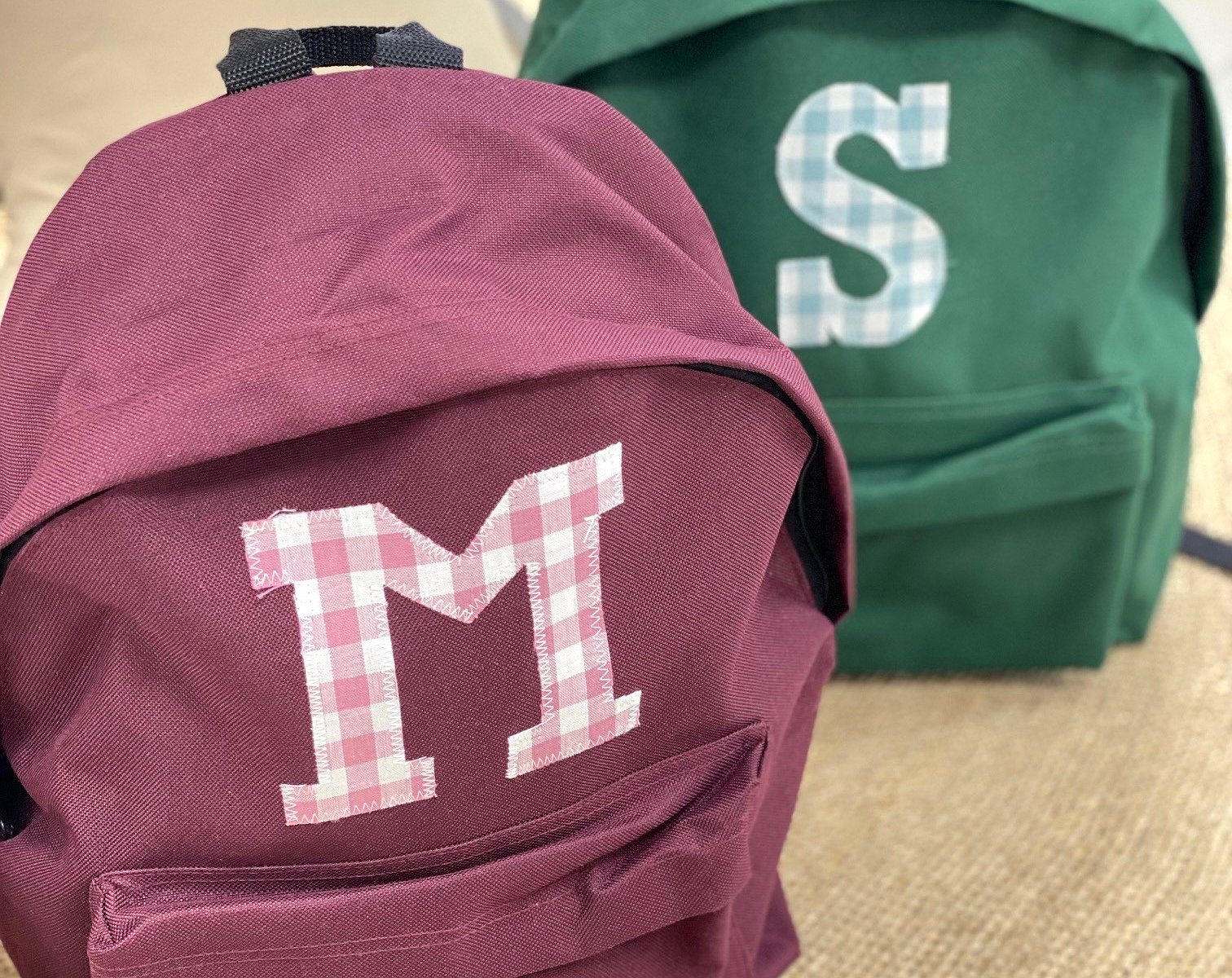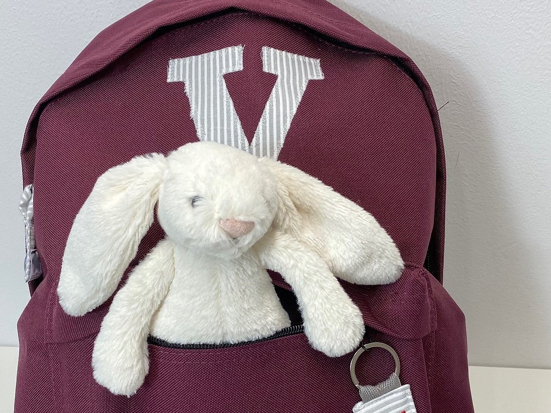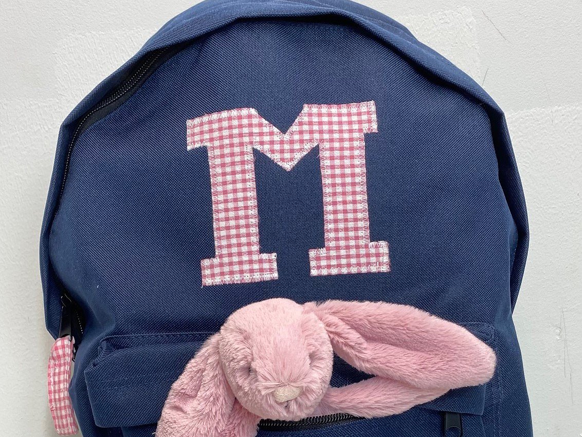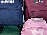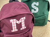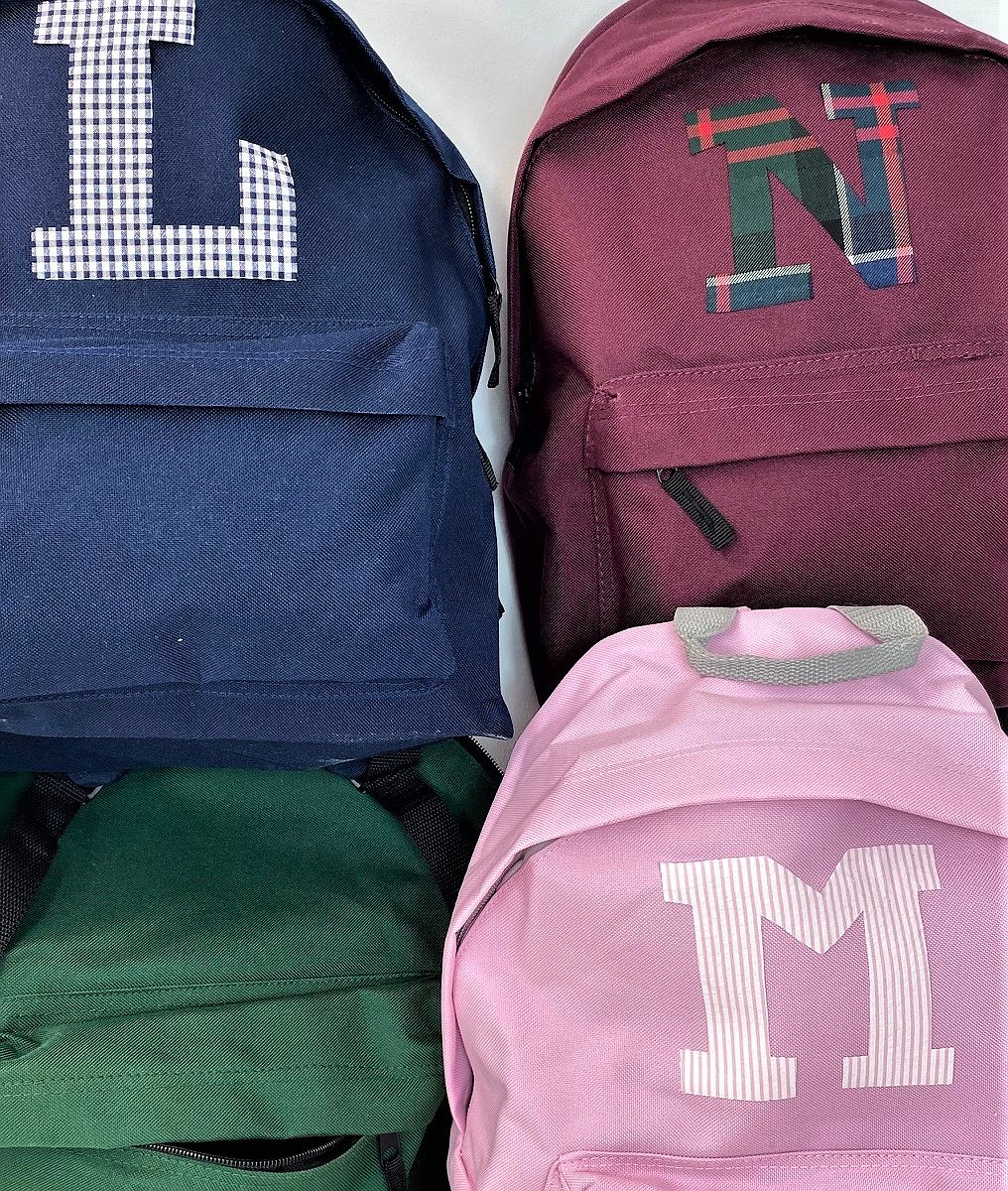 Mochila colegial PLUS mediana con inicial o detalle. Disponible en cuatro colores, para que lleven sus libros al colegio.