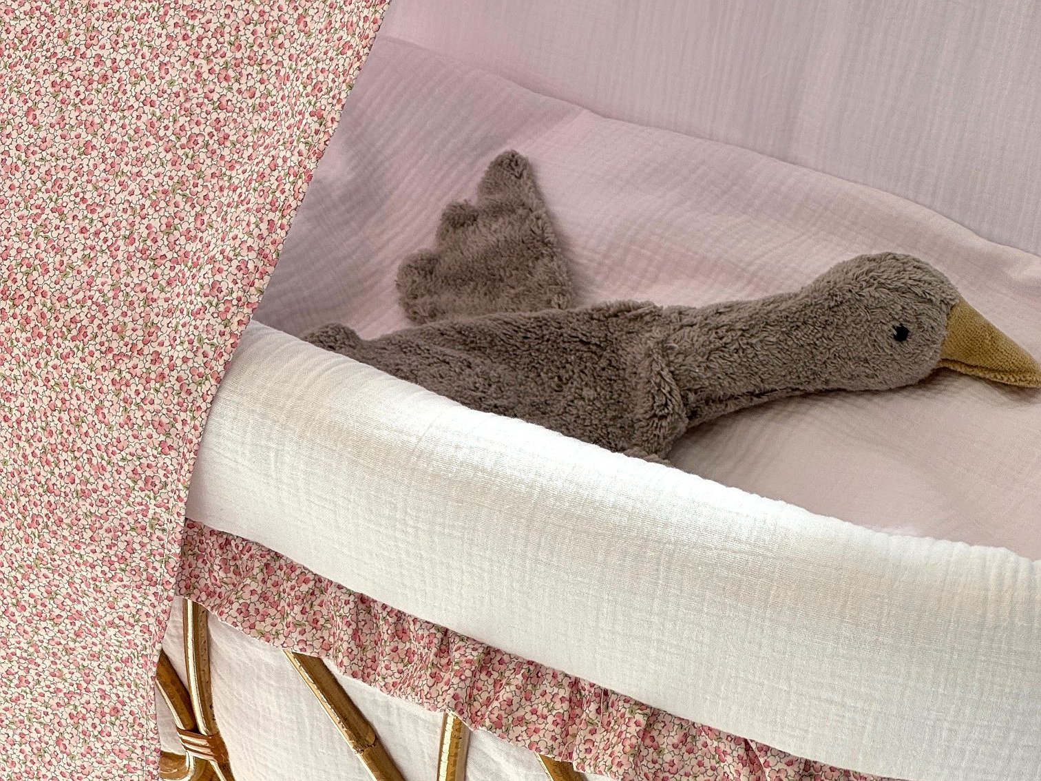 Moisés de caña de bambú ovalado mini con volantes para recién nacido. Imagina un ambiente natural, elegante y delicado con estas mini cunas.