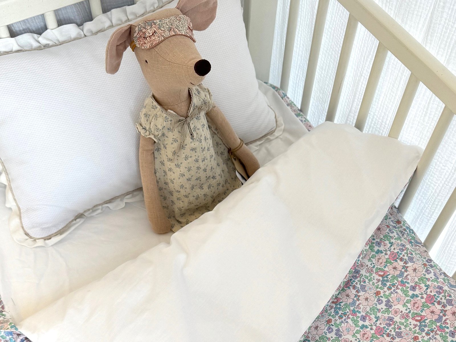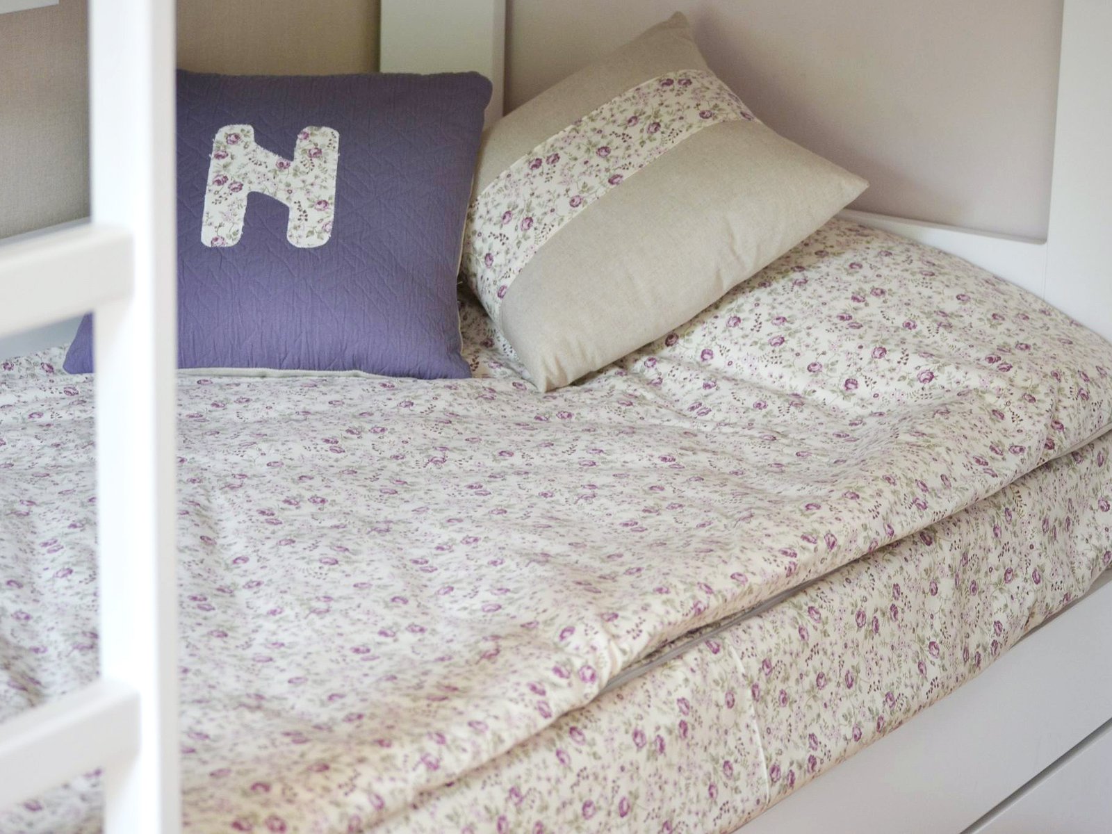 El interior de la parte superior es de sabana de algodón 100%. Incluye funda de almohada y relleno.