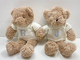 El peluche beige siempre lleva el jersey en blanco, el peluche blanco lleva el jersey arena piedra, también tenemos el blanco con jersey rosa y el roto con jersey azul cieo.