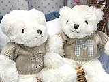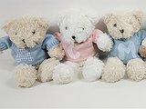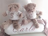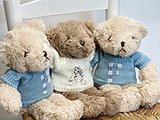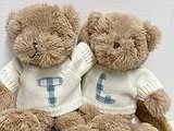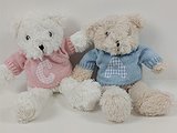 El peluche beige siempre lleva el jersey en blanco, el peluche blanco lleva el jersey arena piedra.