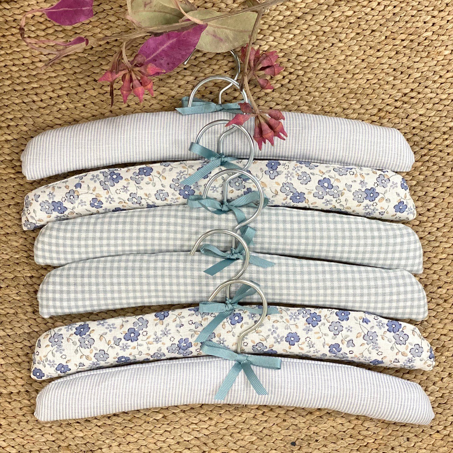 Percha forrada para bebé en la tela que más te guste con estilo minimal .