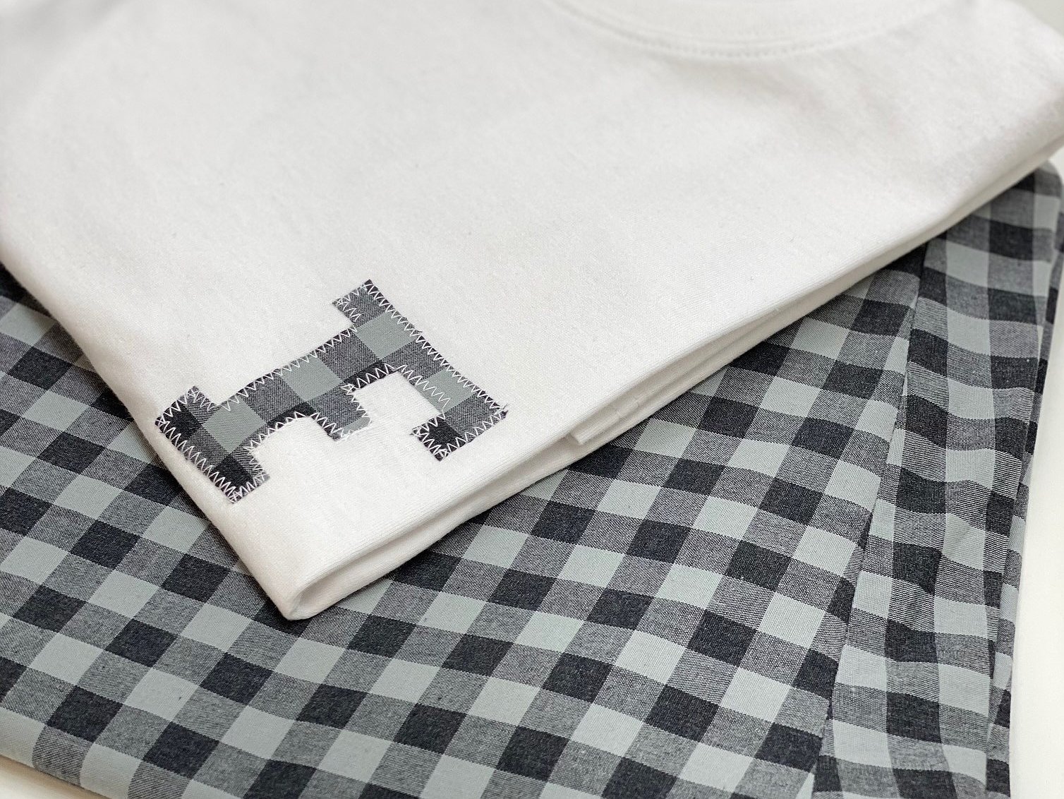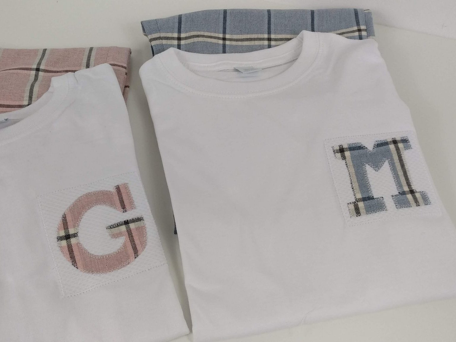 Pijama adulto con camiseta invierno personalizado. Compuesto por una camiseta de manga larga de algodón 100% y pantalón largo del tejido que tu elijas. La camiseta, siempre es de color blanca y puedes elegir o bien el detalle, la inicial o dejarlo sin nada. Una vez hayas decidido, deberás elegir la tela que más te guste y te confeccionamos tu pijama. Puedes conjuntarlos con los pijamas de niño de Cotó Blanc. Pijama niños invierno con camiseta Si alguna tela no está pregúntanos sobre su posibilidad! Las camisetas son unisex y tallan etas. Elige el modelo (Hombre-mujer) la talla, el detalle o inicial (solo una opción, o detalle o inicial) y la tela que más te guste.