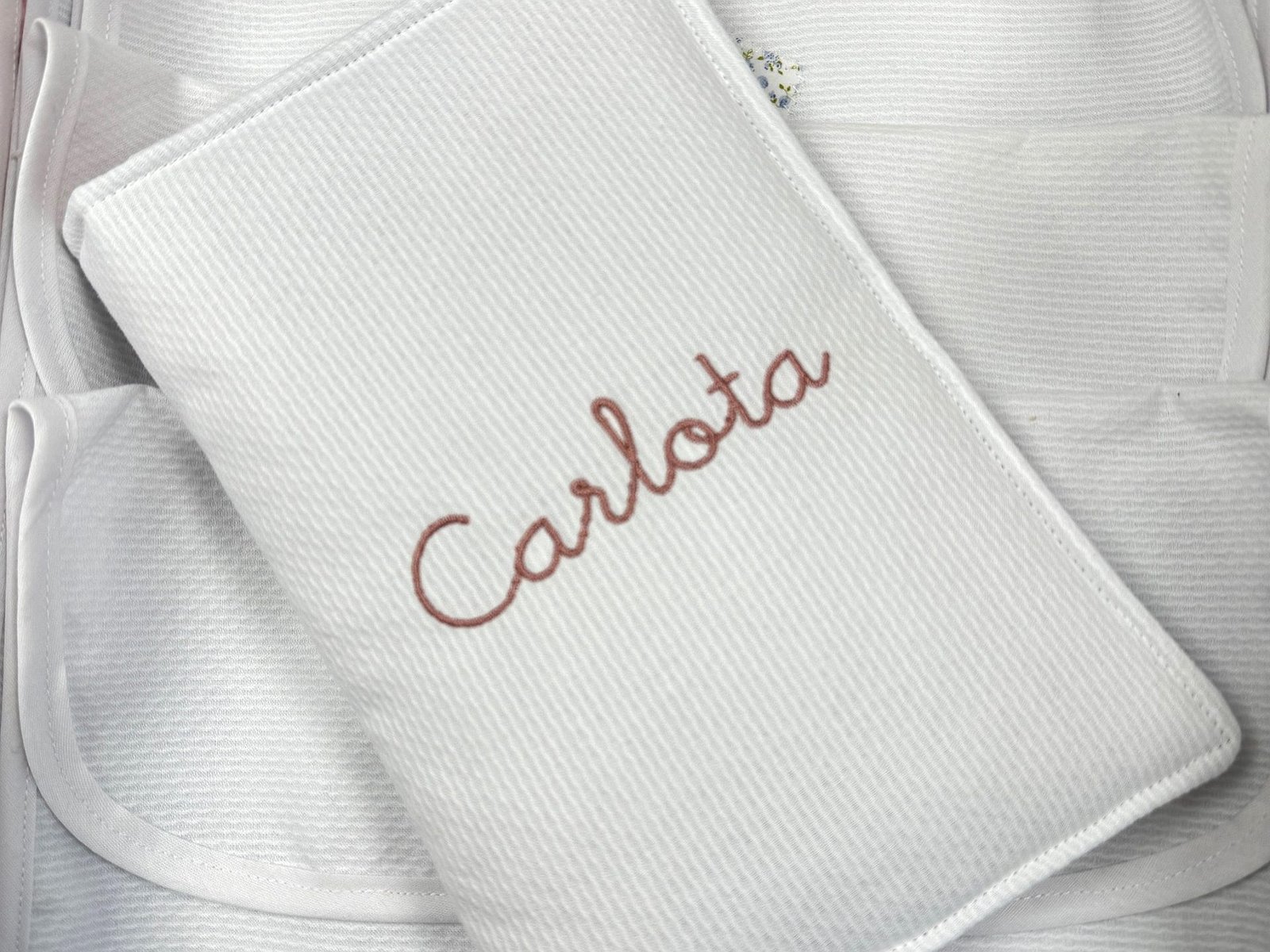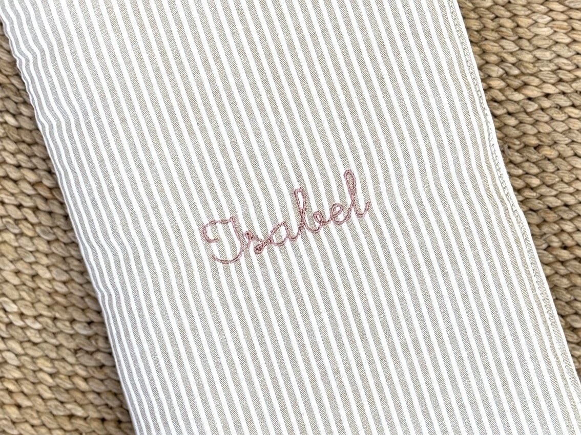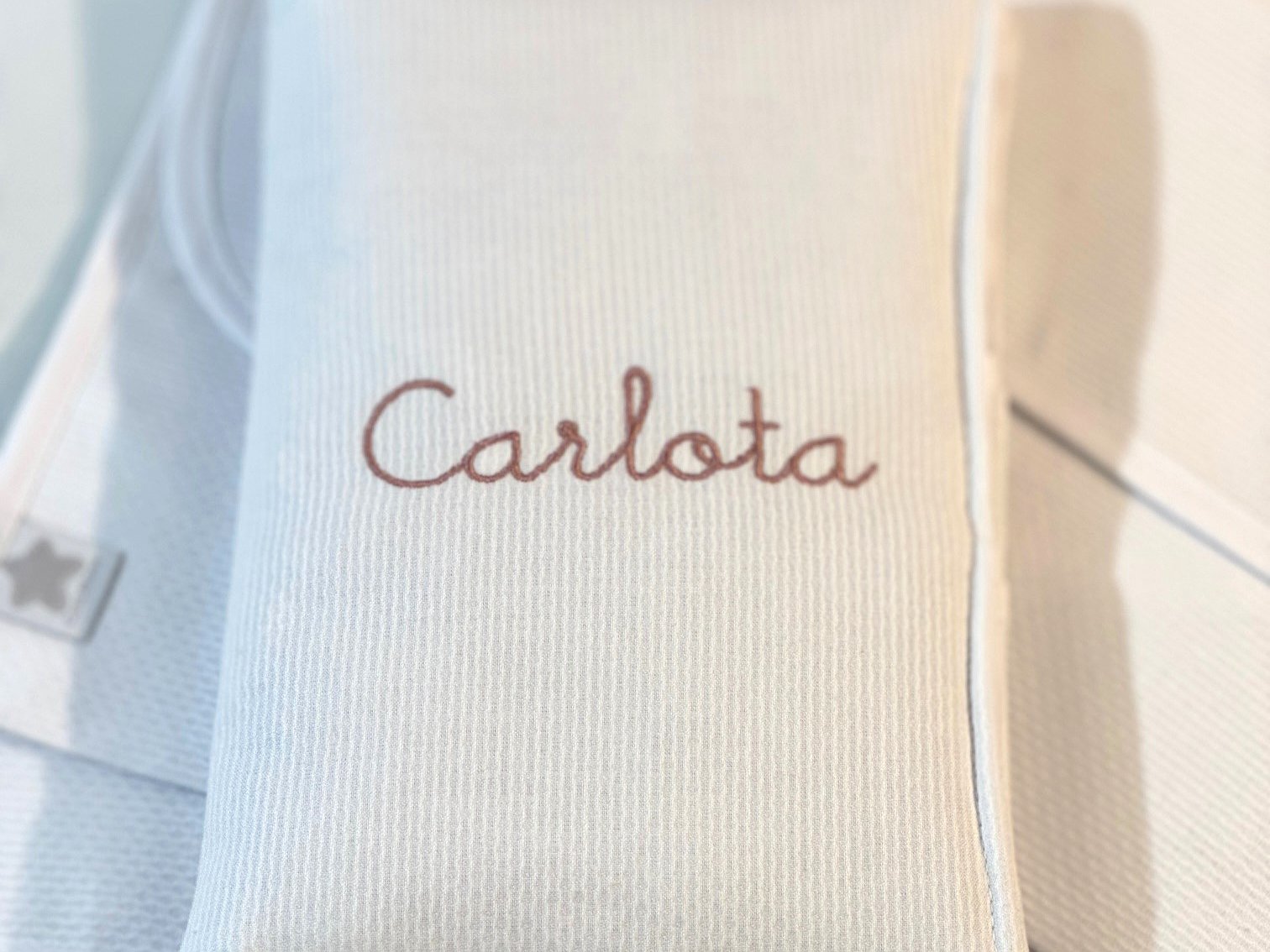 Puedes elegir la tela que más te guste para personalizar la funda, y dale ese toque tan especial con el nombre del bebé bordado en el hilo que mejor quede!