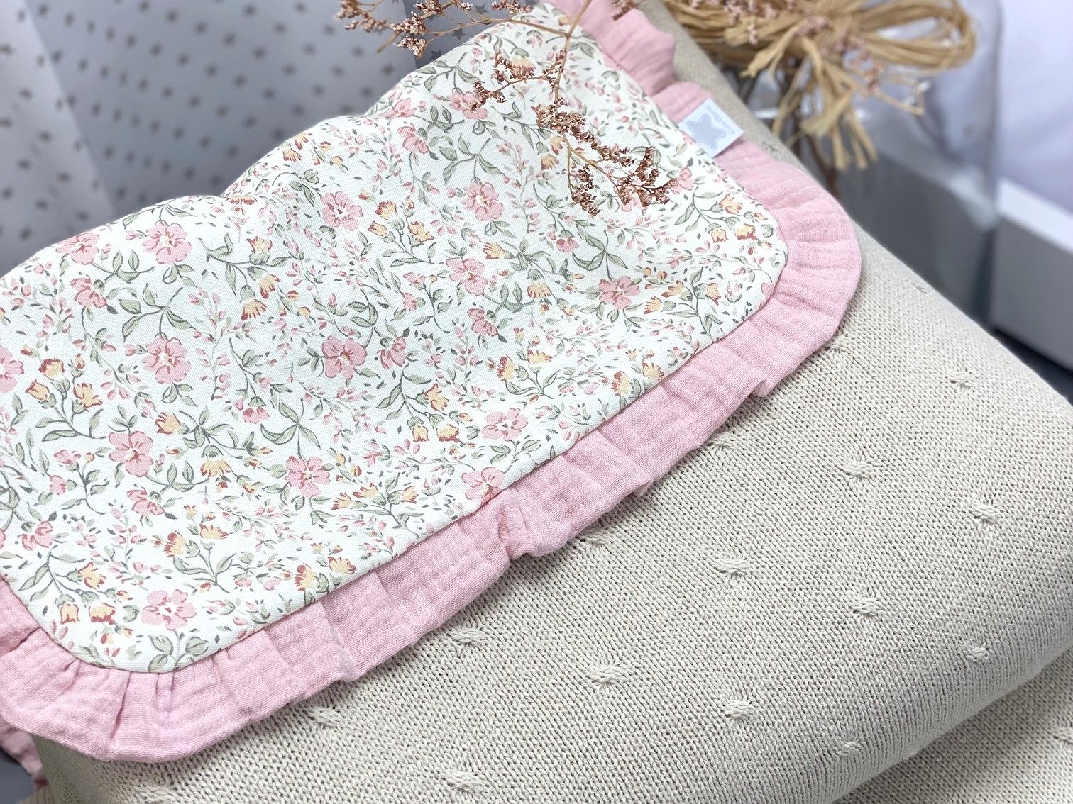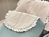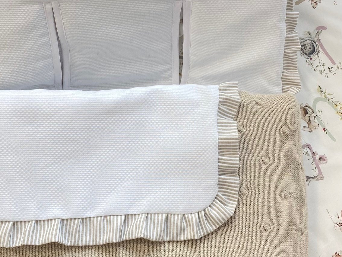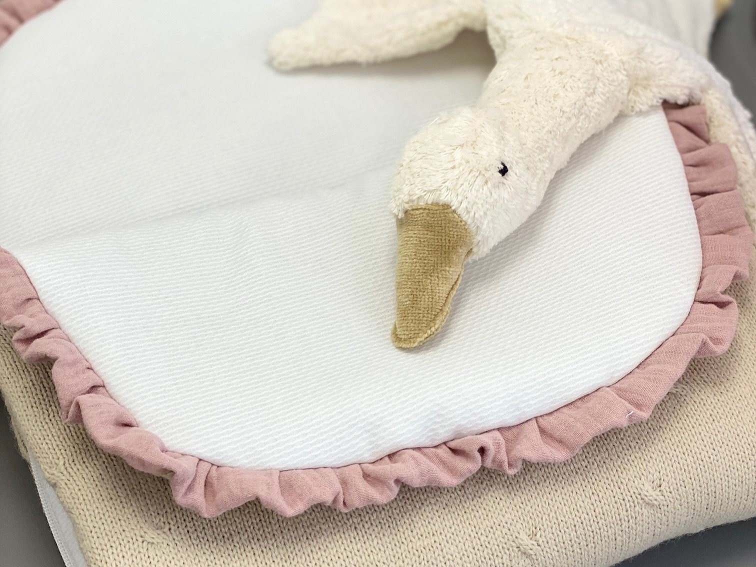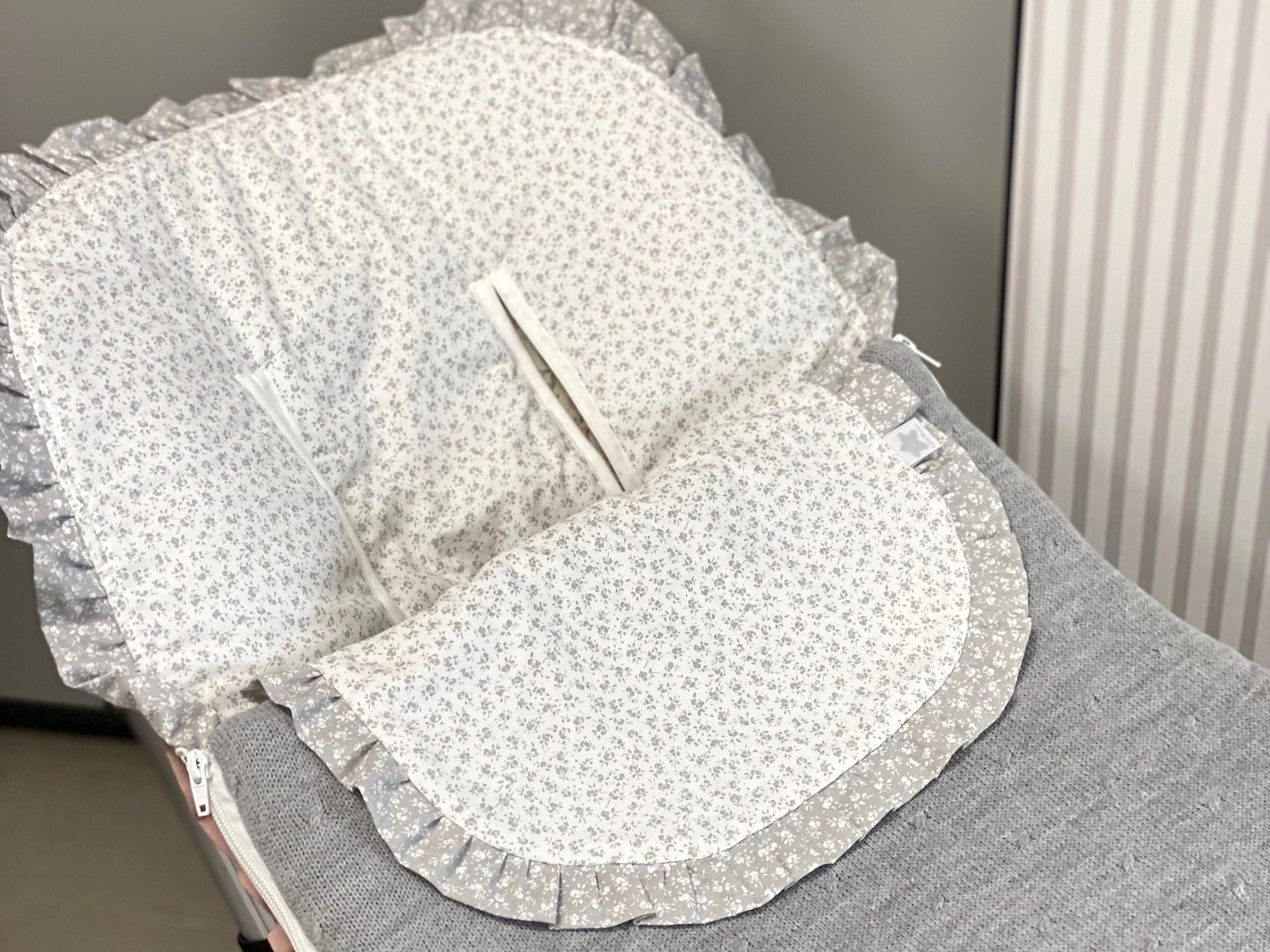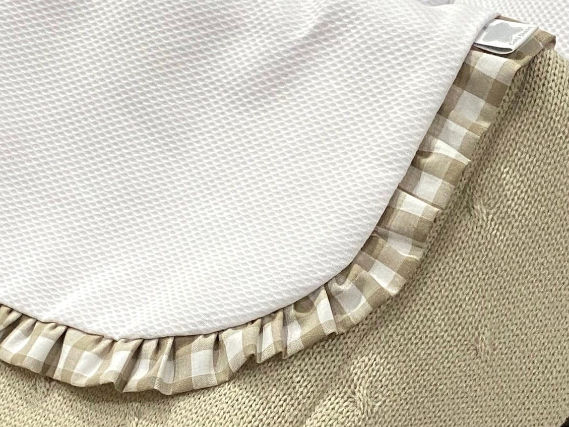 Saco para silla de paseo con volantes y lana en el exterior. Un diseño que se adapta a distintos modelos de cochecito: Bugaboo Camaleón, Bugaboo Fox, Bugaboo Bee, Bugaboo Donkey, Bugaboo Frog, Bugaboo Bufalo, Maclaren, Maxicosi, universal, yoyo, Joolz Hub, Cybex Pryam... Contacta para otras marcas.