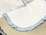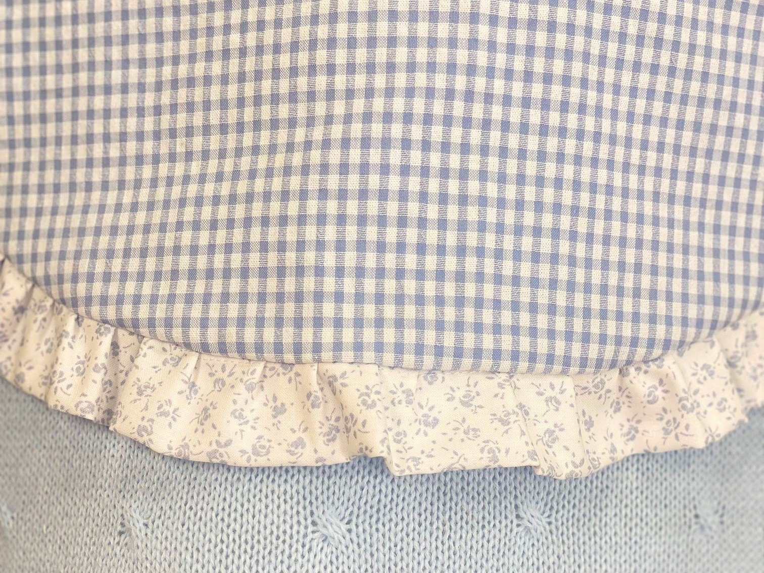 Escoge la tela exterior del saco que tapará el bebé de entre los tonos de lanita que te proponemos. Se puede lavar en la lavadora \nAdemás elige la tela para los volantes de entre las que te aconsejamos.