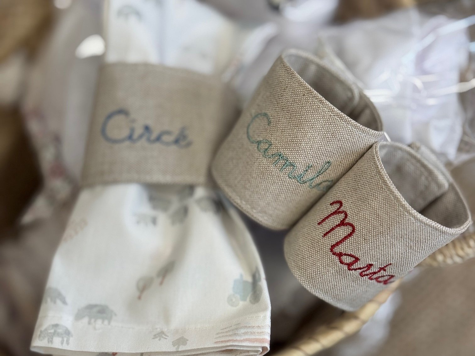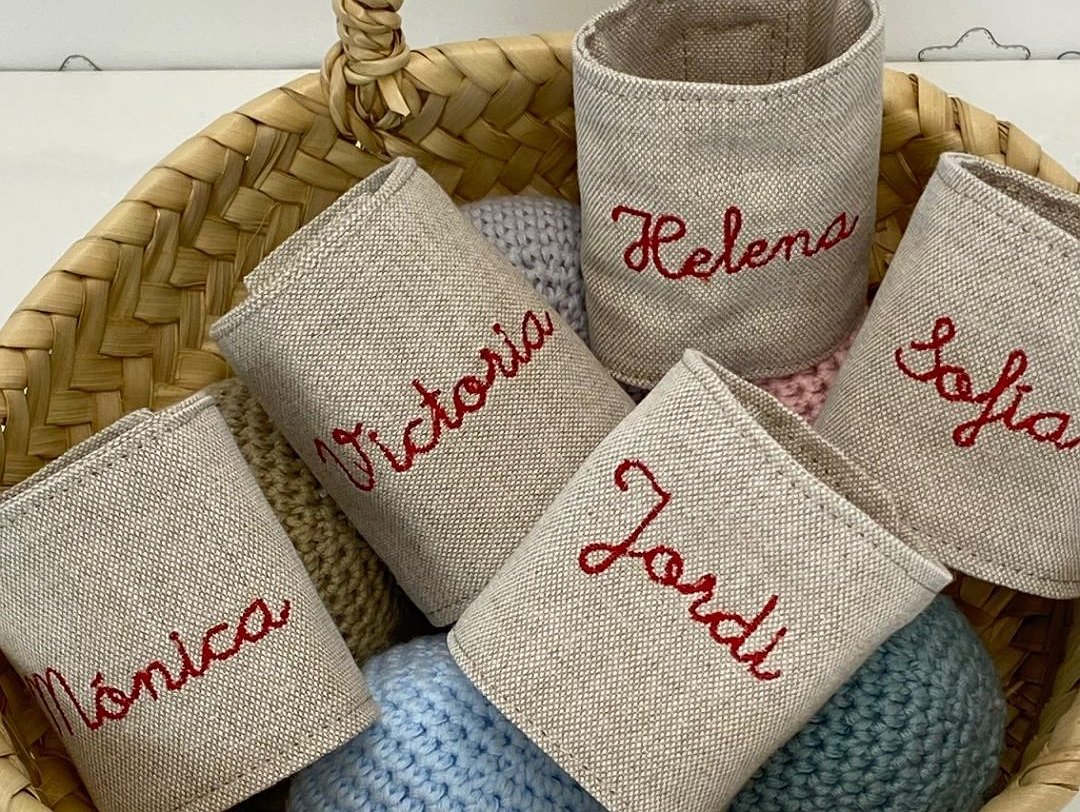 Servilletero personalizado con nombre bordado en el color que más te guste.
