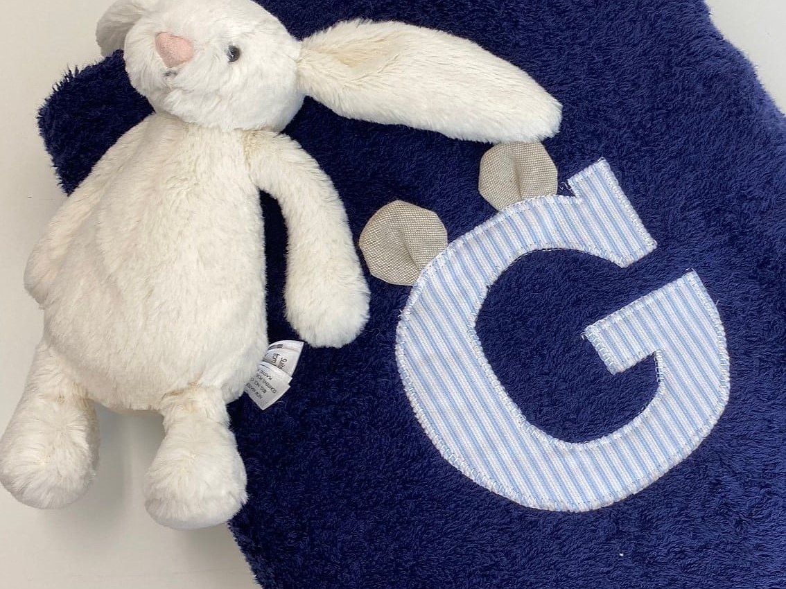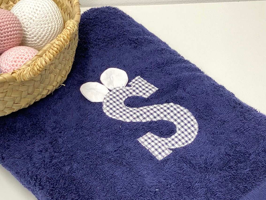 La toalla es de rizo 100% algodón de alta calidad y ofrece una gran absorción y suavidad. A diferencia de nuestra toalla con inicial básica, ésta se caracteriza porque las iniciales llevan unas orejitas que le dan un toque muy mono.