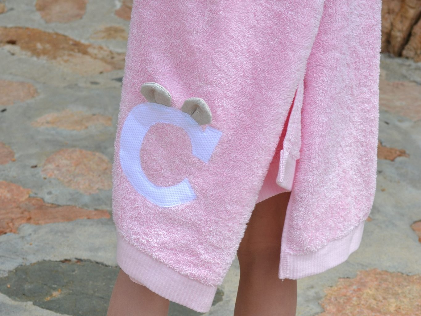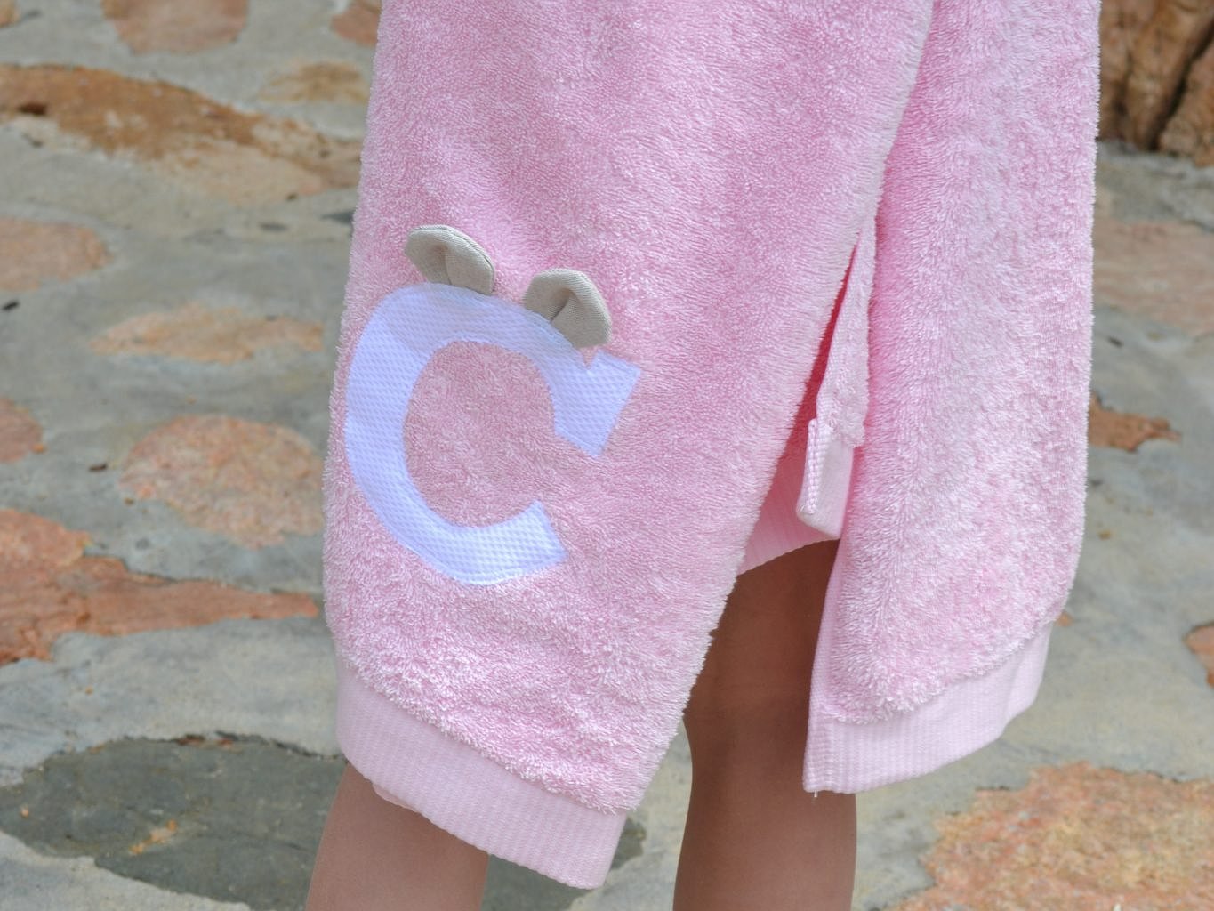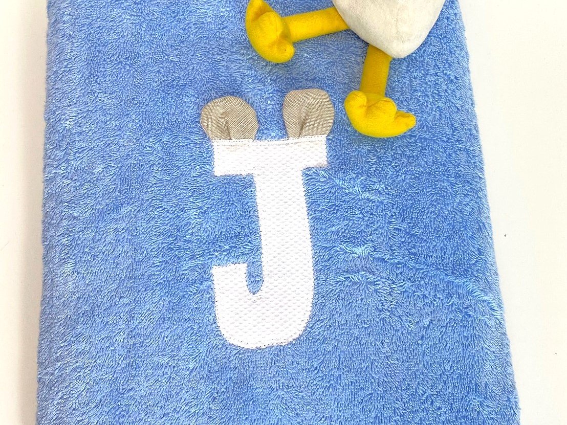 Toalla modelo Alicia con inicial y orejitas es un diseño personalizado con un toque muy divertido.