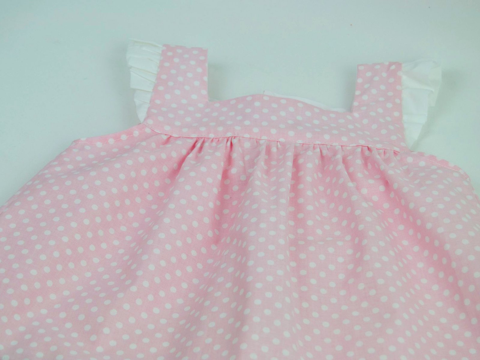 Vestido manga volante niña, modelo Clara. El vestido con mangas de volantes y abotonado en la parte trasera es un clásico para los días de verano.